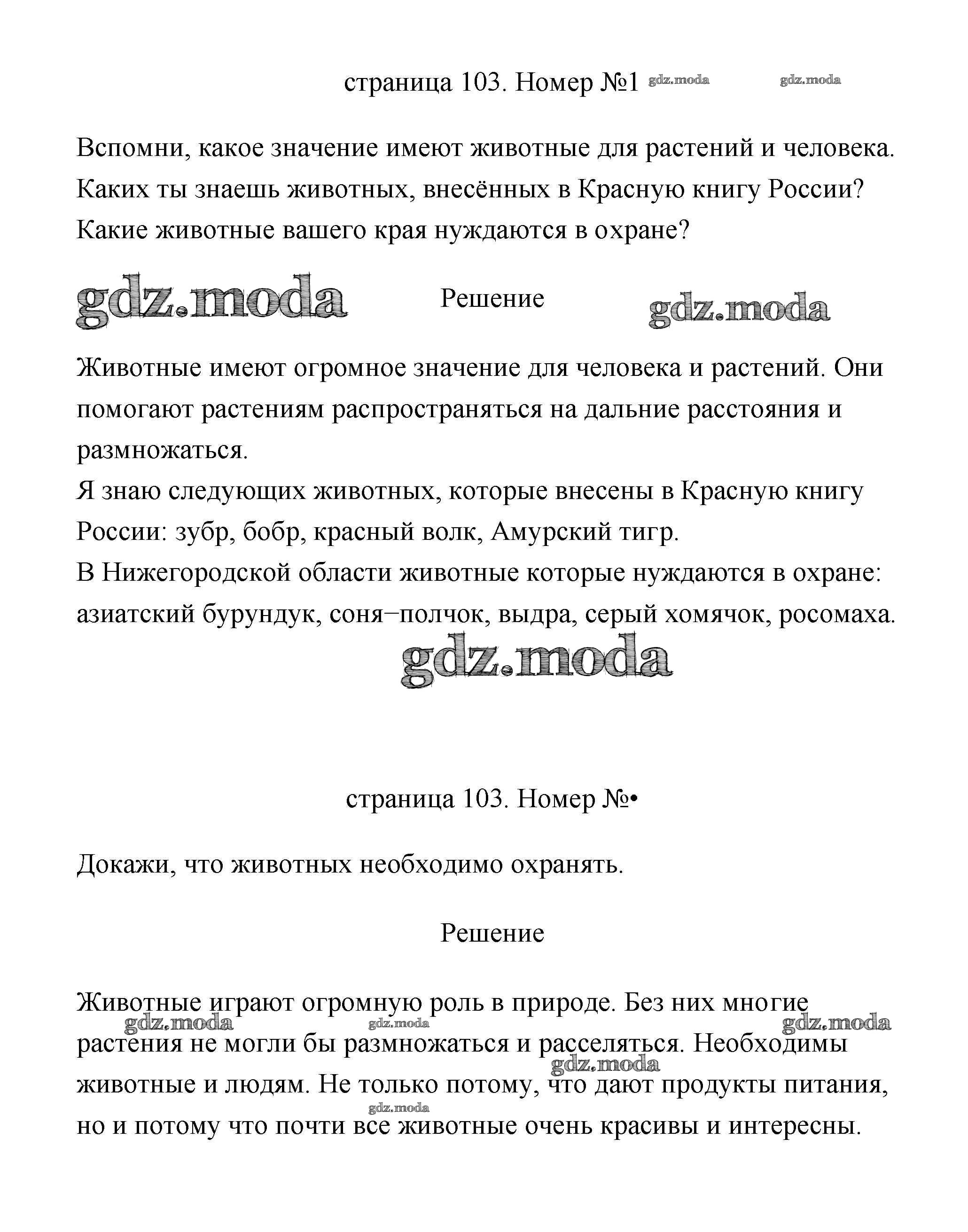 ГДЗ решение к заданию № 103 Окружающий мир 3 класс Плешаков (Школы России) Просвещение 2017 Часть 1, Часть 2 ФГОС бесплатно на гдз.мода!