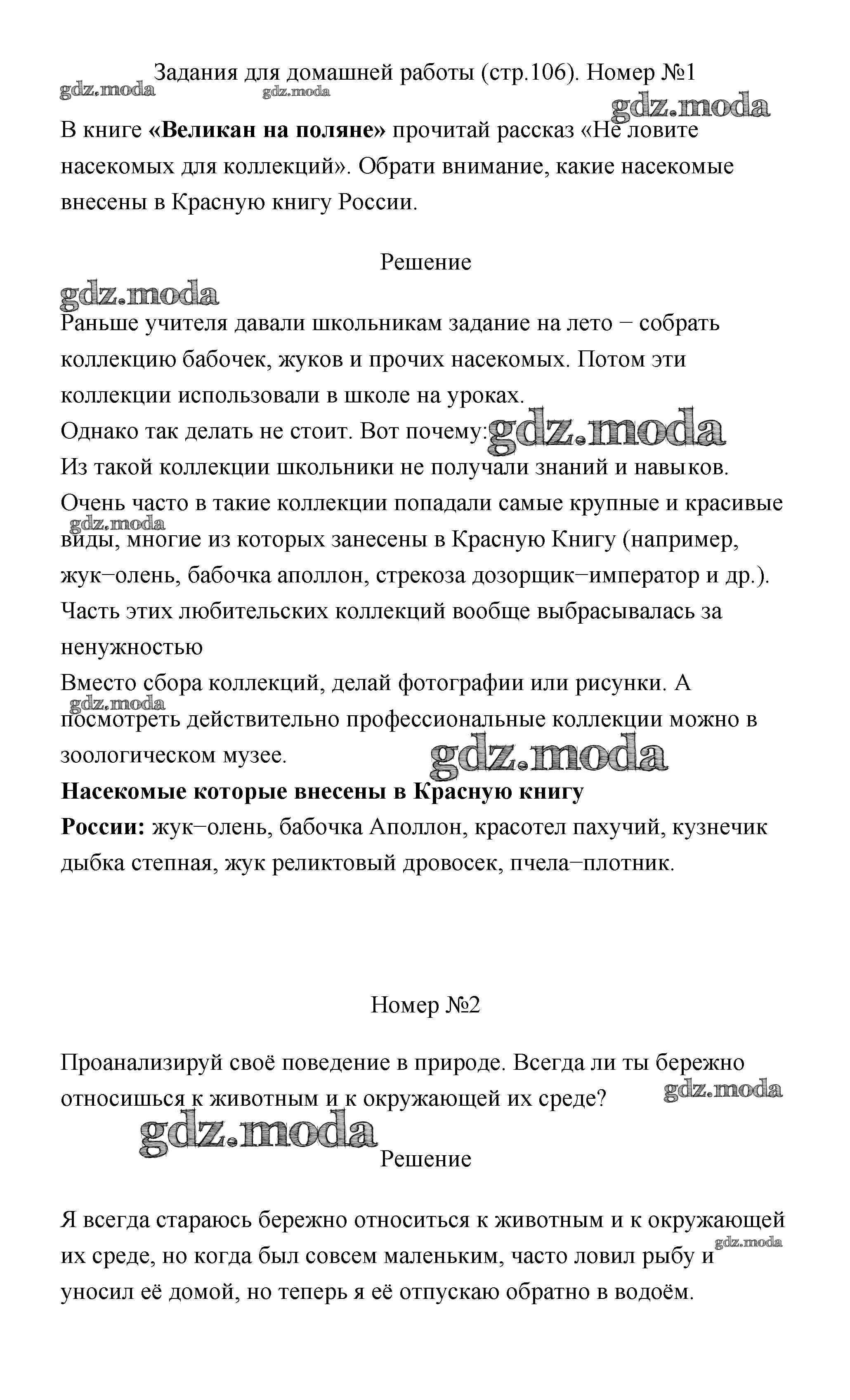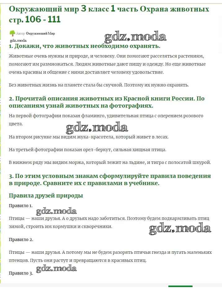 ОТВЕТ на задание № 106 Учебник по Окружающему миру 3 класс Плешаков Школа России