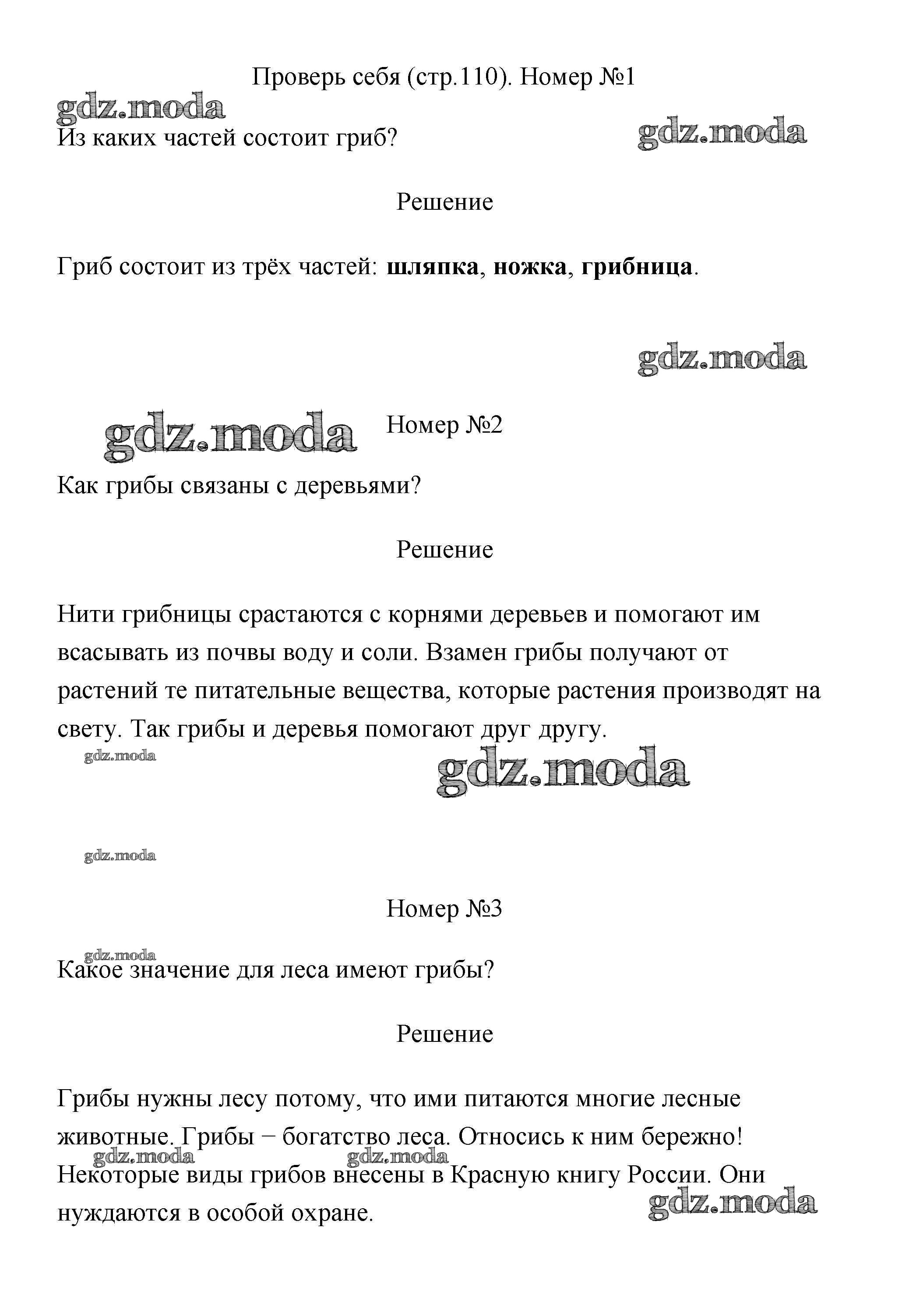 ГДЗ решение к заданию № 110 Окружающий мир 3 класс Плешаков (Школы России) Просвещение 2017 Часть 1, Часть 2 ФГОС бесплатно на гдз.мода!