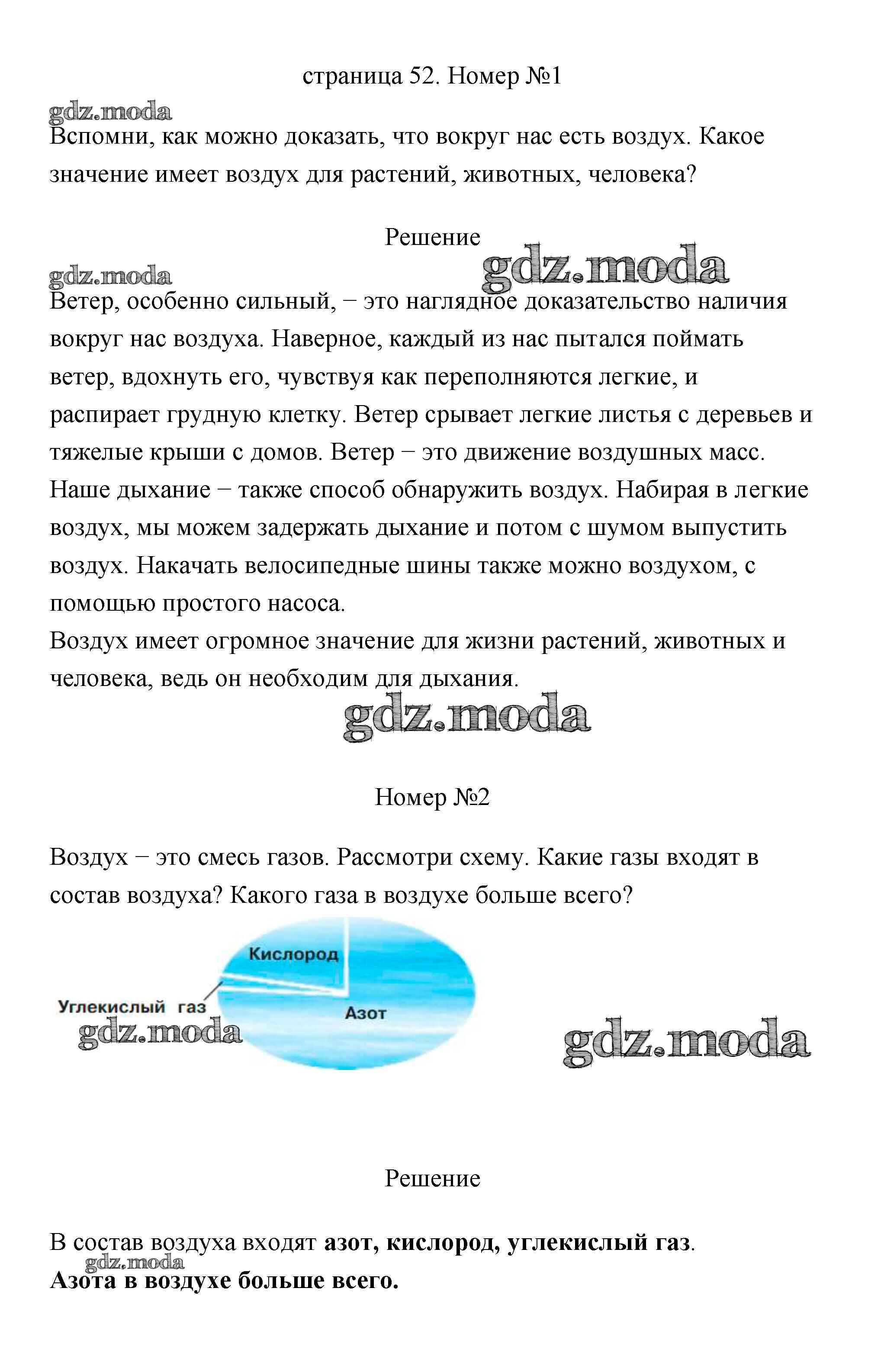 ГДЗ решение к заданию № 52 Окружающий мир 3 класс Плешаков (Школы России) Просвещение 2017 Часть 1, Часть 2 ФГОС бесплатно на гдз.мода!
