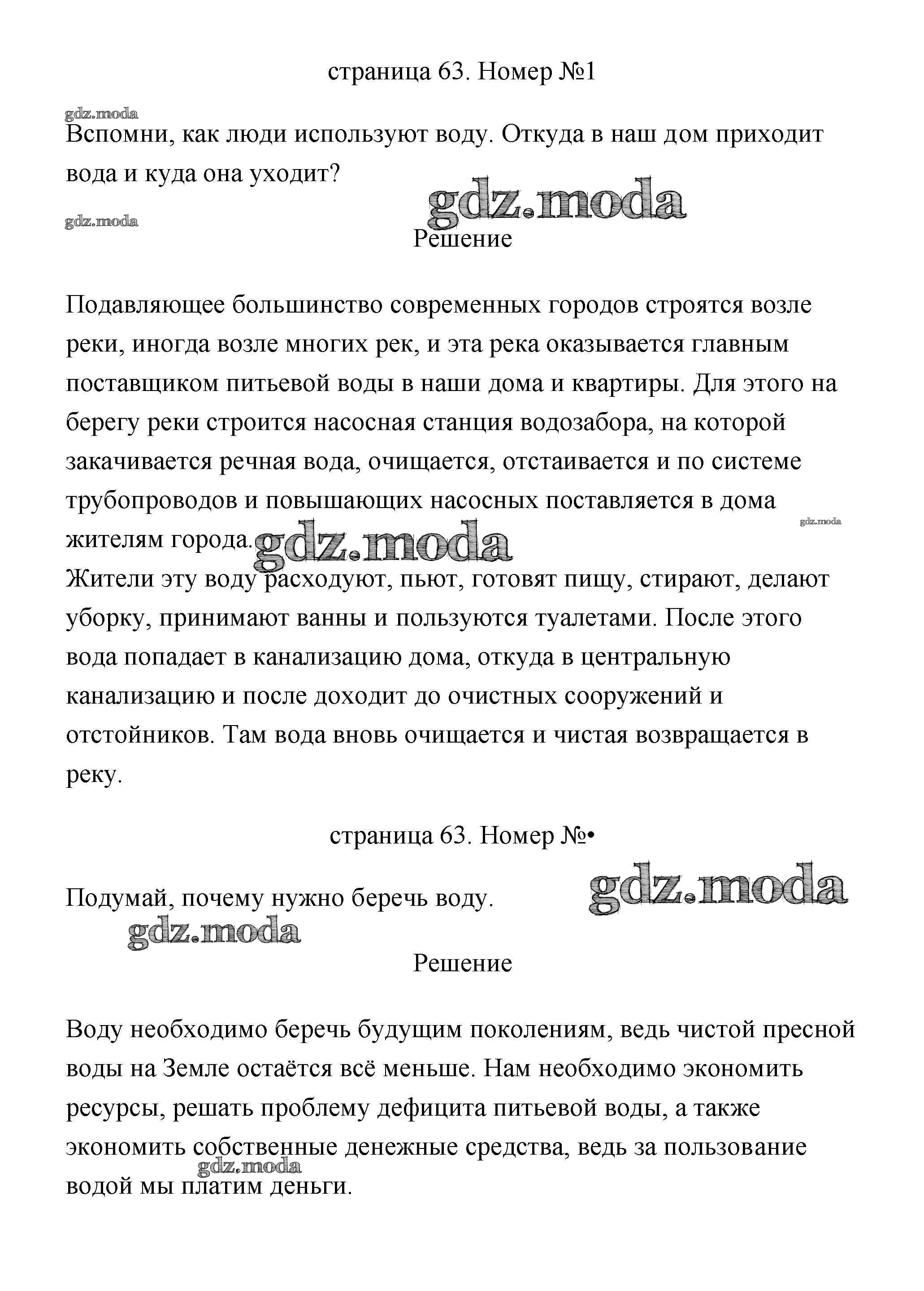ГДЗ решение к заданию № 63 Окружающий мир 3 класс Плешаков (Школы России) Просвещение 2017 Часть 1, Часть 2 ФГОС бесплатно на гдз.мода!