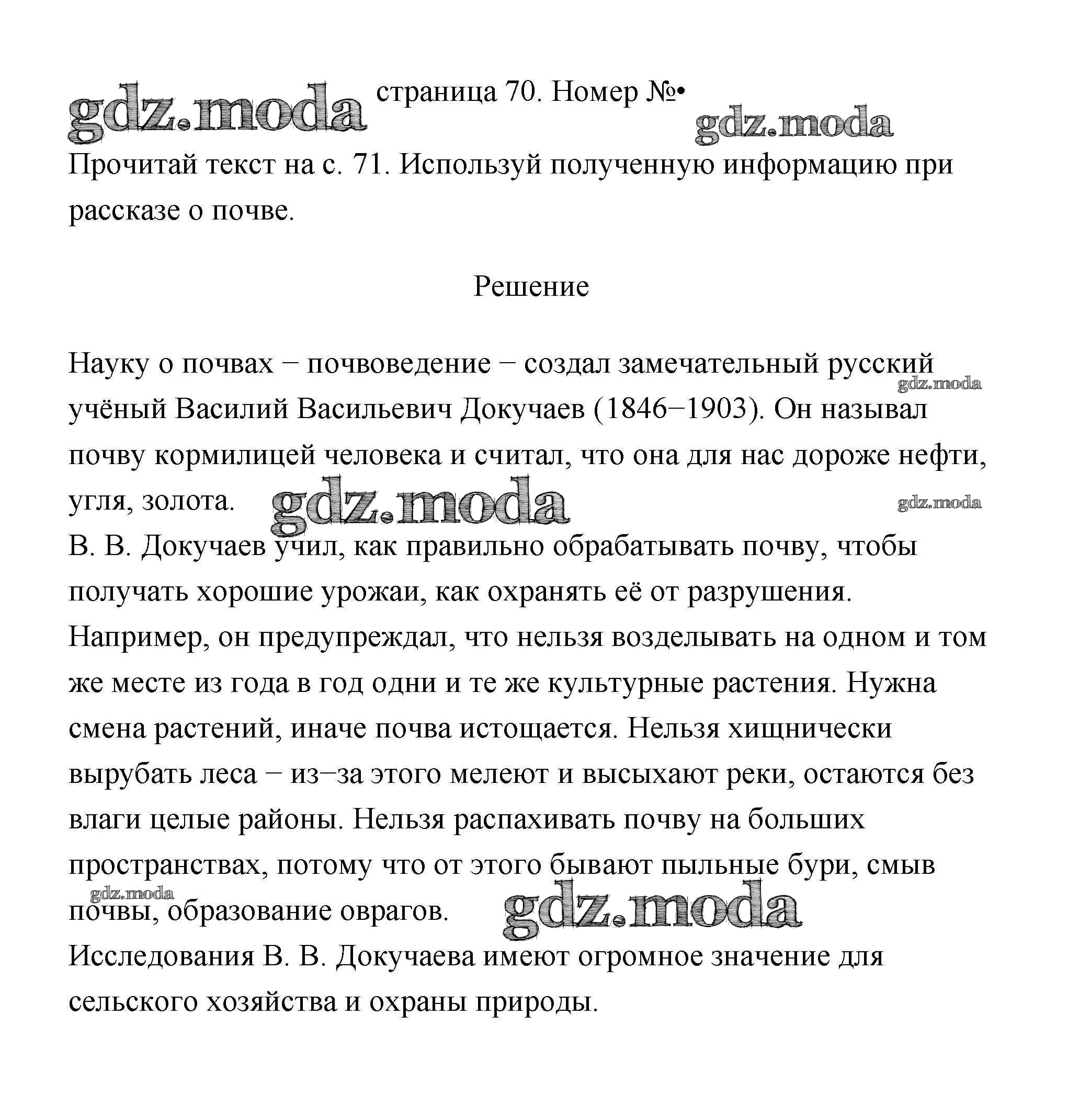 ГДЗ решение к заданию № 70 Окружающий мир 3 класс Плешаков (Школы России) Просвещение 2017 Часть 1, Часть 2 ФГОС бесплатно на гдз.мода!