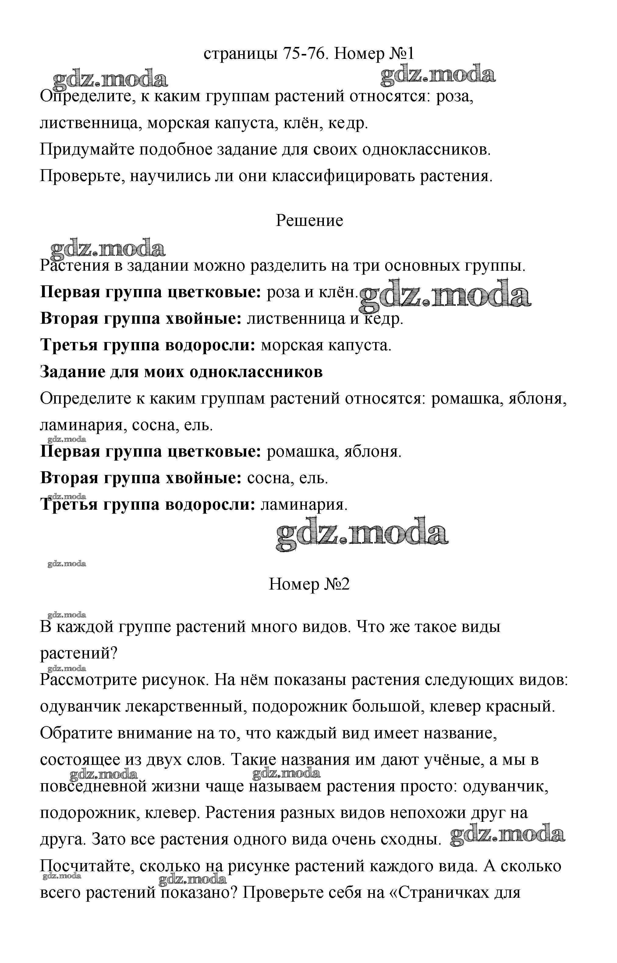 ГДЗ решение к заданию № 75 Окружающий мир 3 класс Плешаков (Школы России) Просвещение 2017 Часть 1, Часть 2 ФГОС бесплатно на гдз.мода!