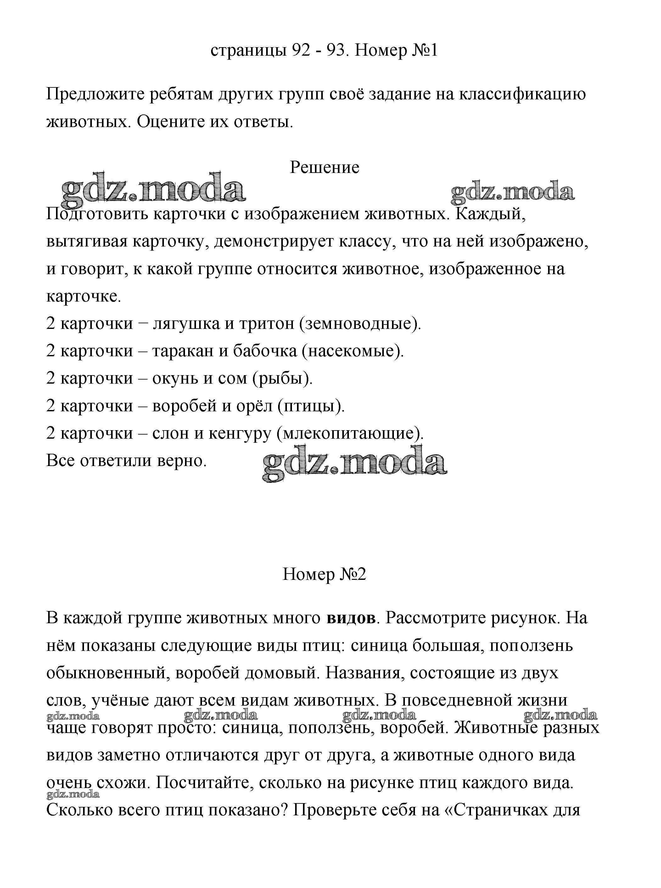 ГДЗ решение к заданию № 92 Окружающий мир 3 класс Плешаков (Школы России) Просвещение 2017 Часть 1, Часть 2 ФГОС бесплатно на гдз.мода!