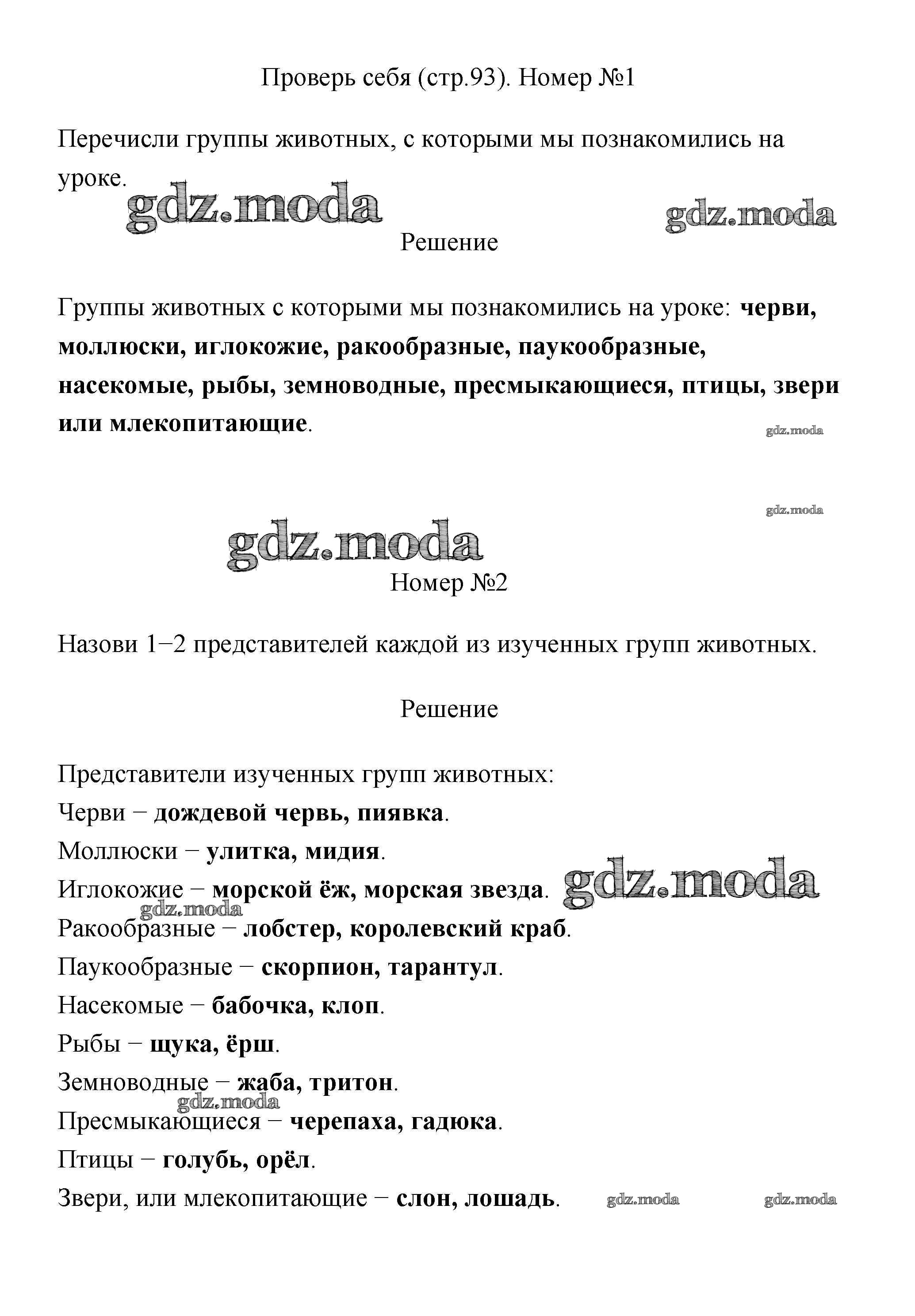 ГДЗ решение к заданию № 93 Окружающий мир 3 класс Плешаков (Школы России) Просвещение 2017 Часть 1, Часть 2 ФГОС бесплатно на гдз.мода!