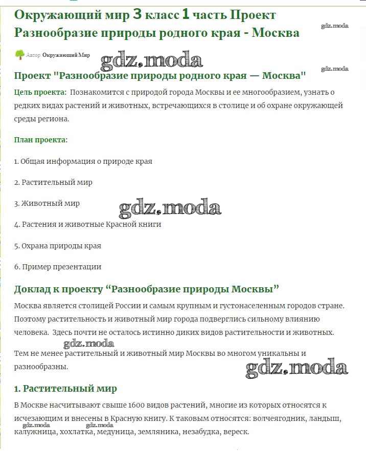 ОТВЕТ на задание № 1 Учебник по Окружающему миру 3 класс Плешаков Школа России