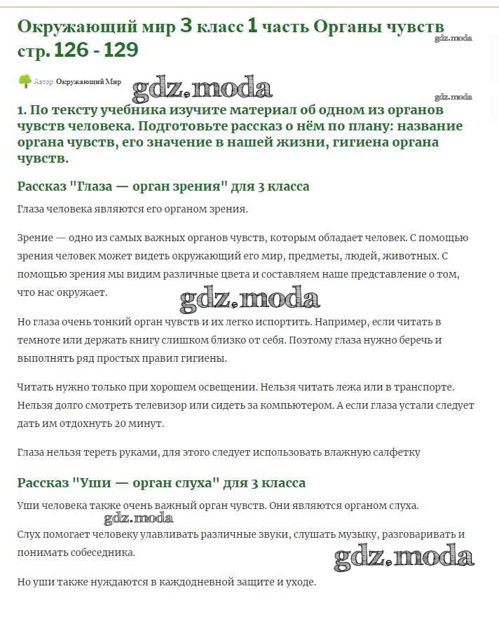 ГДЗ решение к заданию № 126 Окружающий мир 3 класс Плешаков (Школы России) Просвещение 2017 Часть 1, Часть 2 ФГОС бесплатно на гдз.мода!