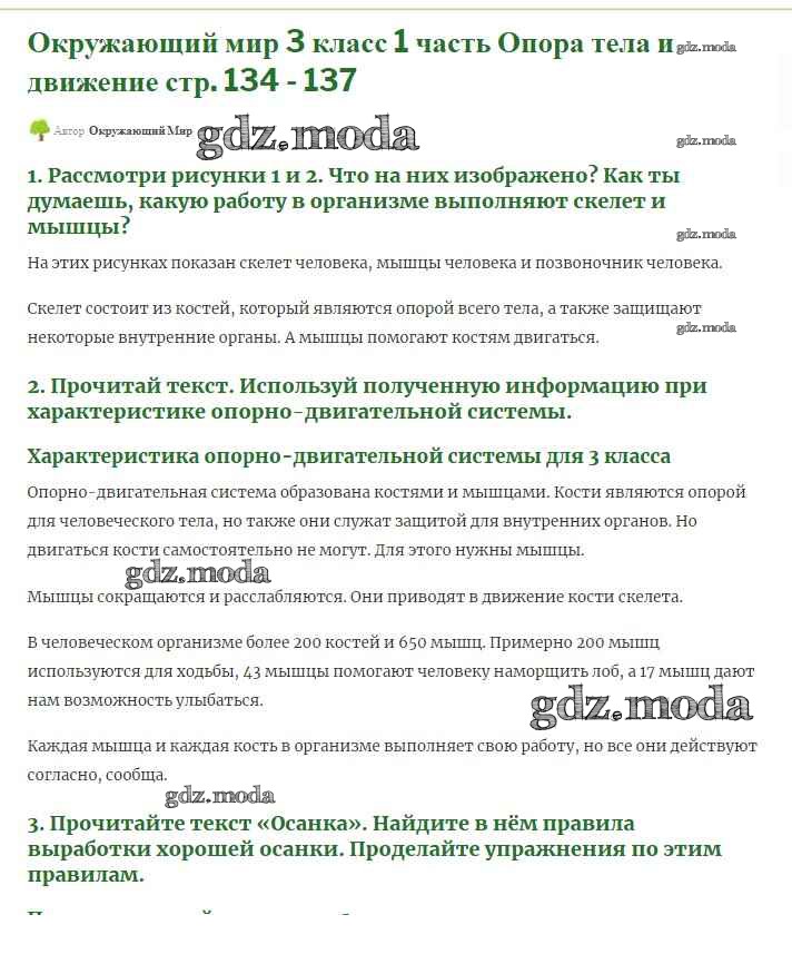 ОТВЕТ на задание № 134 Учебник по Окружающему миру 3 класс Плешаков Школа России