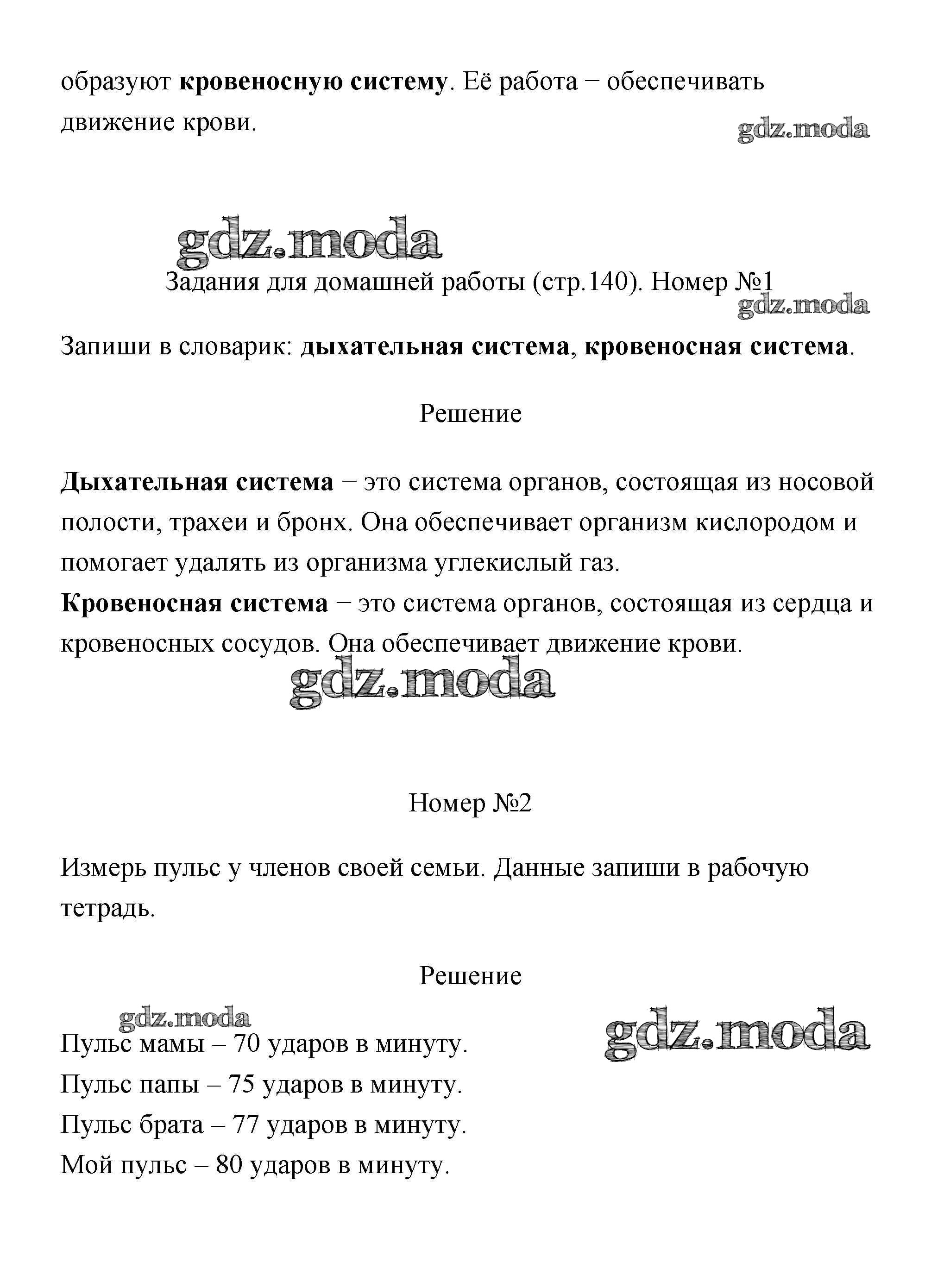 ГДЗ решение к заданию № 140 Окружающий мир 3 класс Плешаков (Школы России) Просвещение 2017 Часть 1, Часть 2 ФГОС бесплатно на гдз.мода!