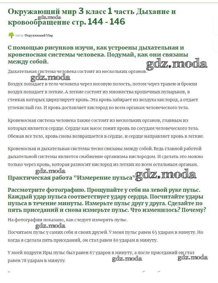 ОТВЕТ на задание № 144 Учебник по Окружающему миру 3 класс Плешаков Школа России