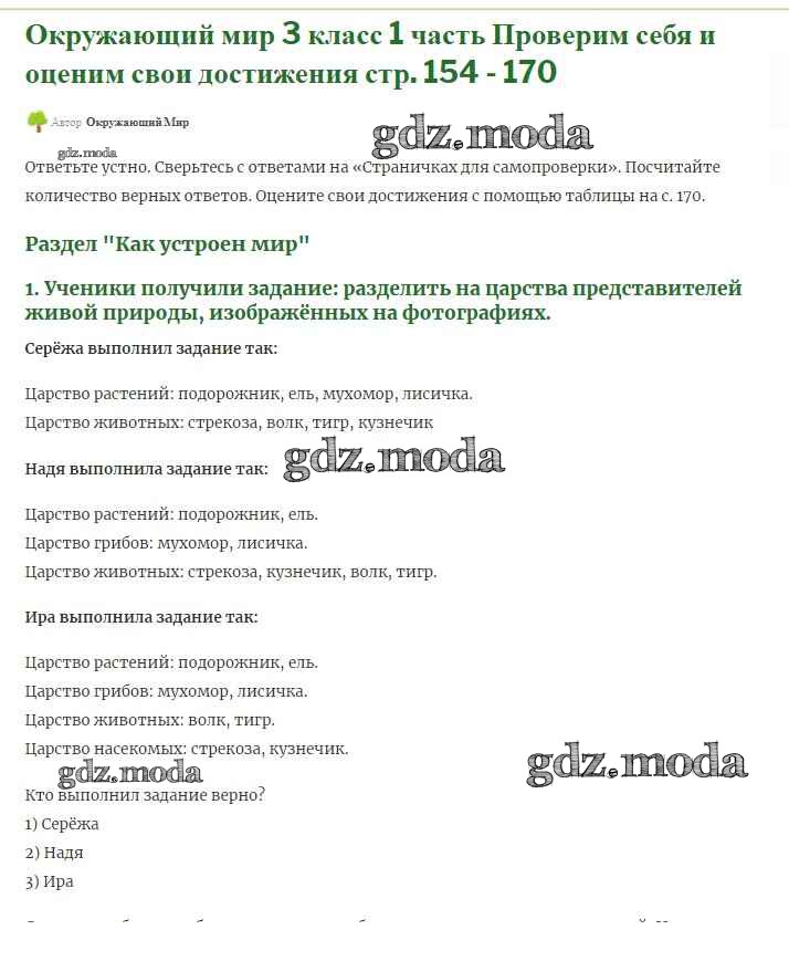 ГДЗ решение к заданию № 154 Окружающий мир 3 класс Плешаков (Школы России) Просвещение 2017 Часть 1, Часть 2 ФГОС бесплатно на гдз.мода!