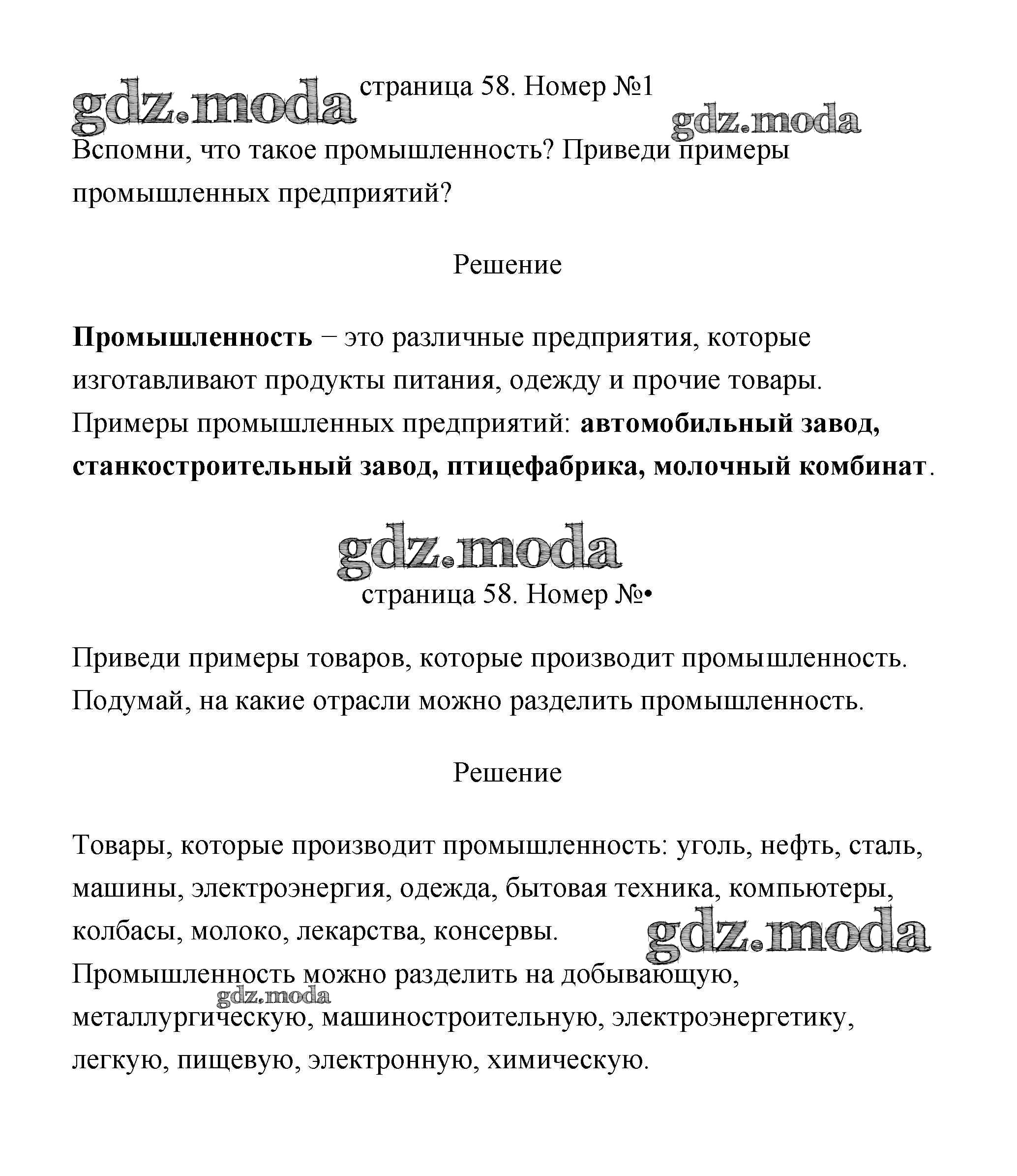 ГДЗ решение к заданию № 58 Окружающий мир 3 класс Плешаков (Школы России) Просвещение 2017 Часть 1, Часть 2 ФГОС бесплатно на гдз.мода!