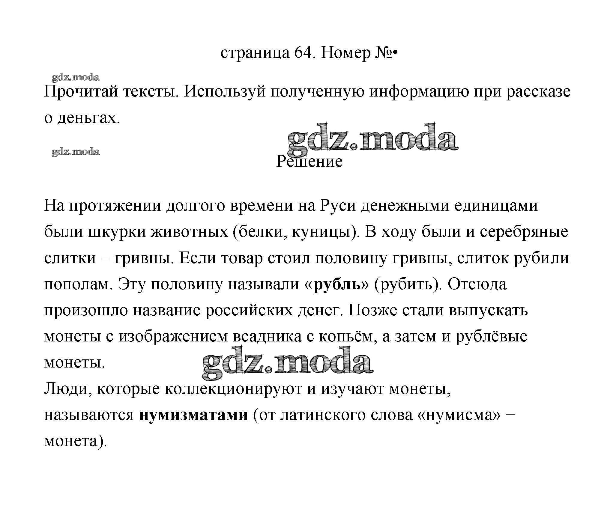 ГДЗ решение к заданию № 64 Окружающий мир 3 класс Плешаков (Школы России) Просвещение 2017 Часть 1, Часть 2 ФГОС бесплатно на гдз.мода!