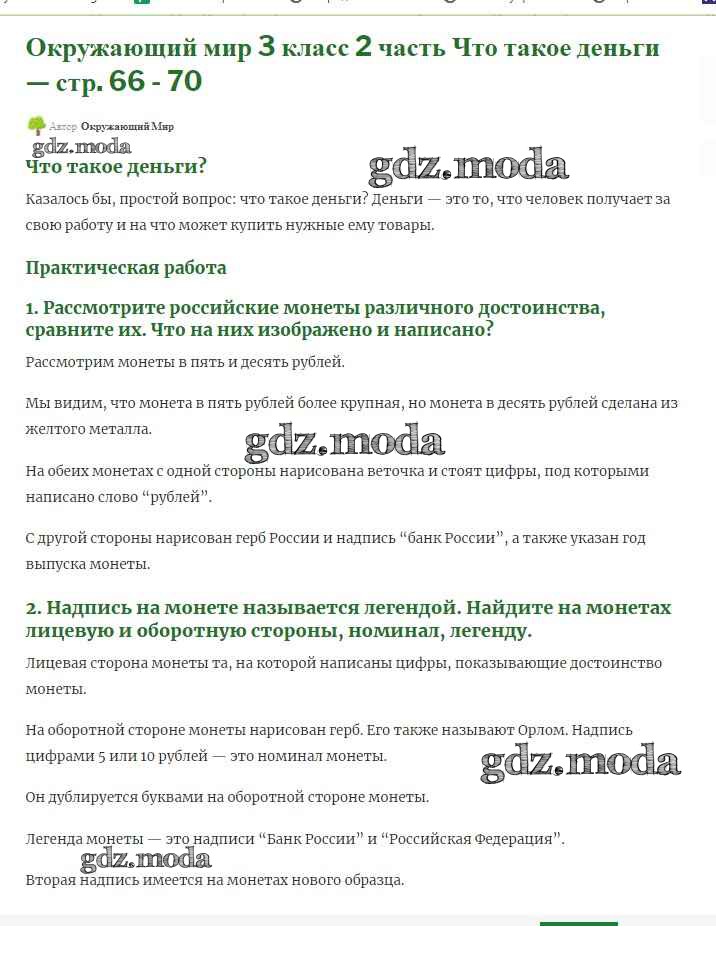ОТВЕТ на задание № 66 Учебник по Окружающему миру 3 класс Плешаков Школа России