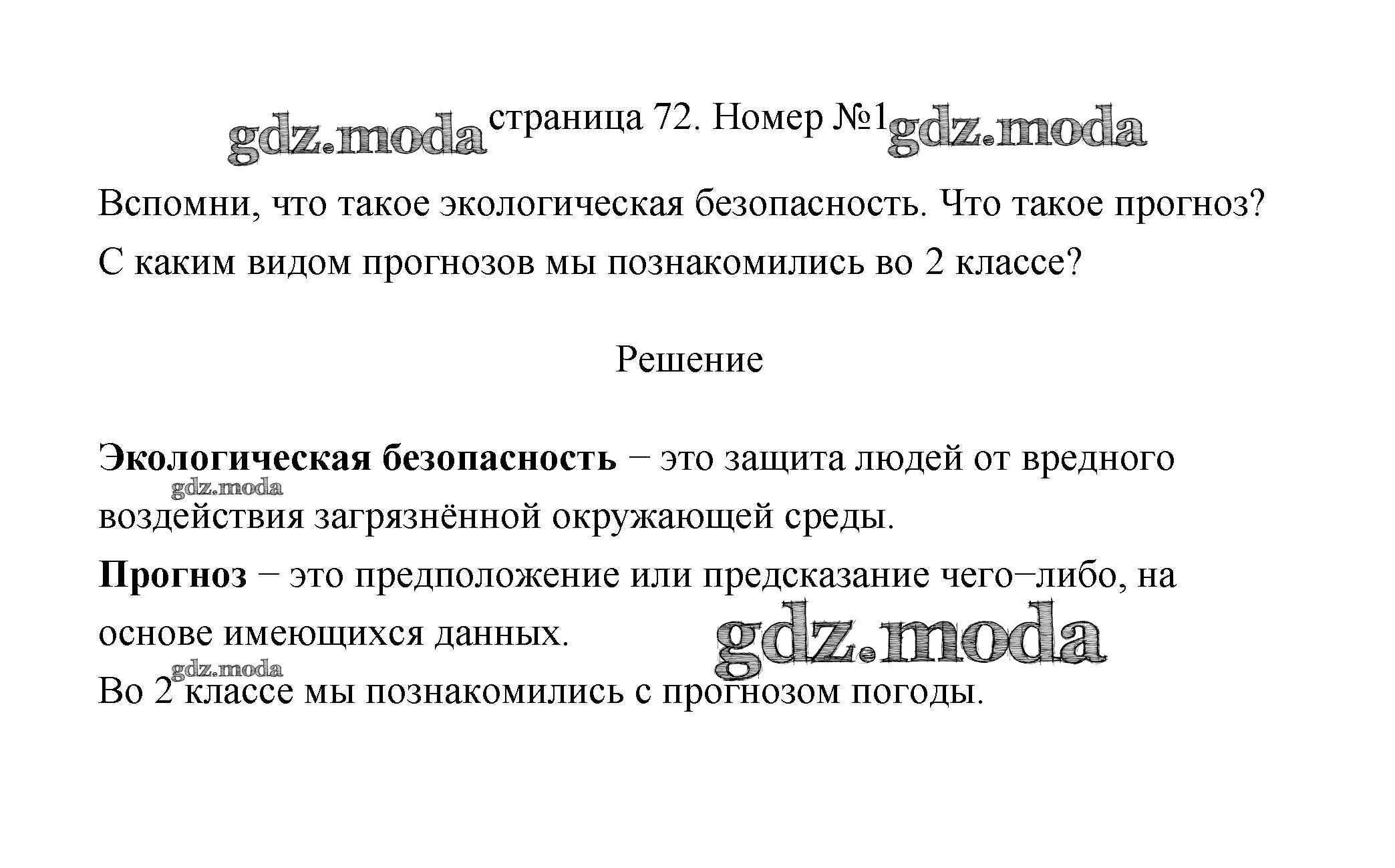 ГДЗ решение к заданию № 72 Окружающий мир 3 класс Плешаков (Школы России) Просвещение 2017 Часть 1, Часть 2 ФГОС бесплатно на гдз.мода!