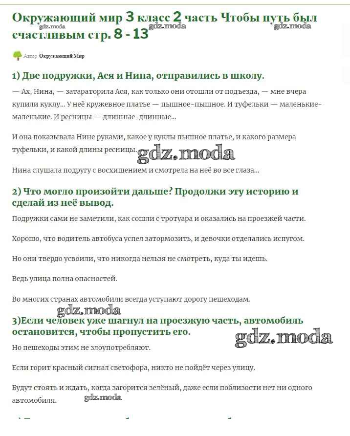 ОТВЕТ на задание № 8 Учебник по Окружающему миру 3 класс Плешаков Школа России