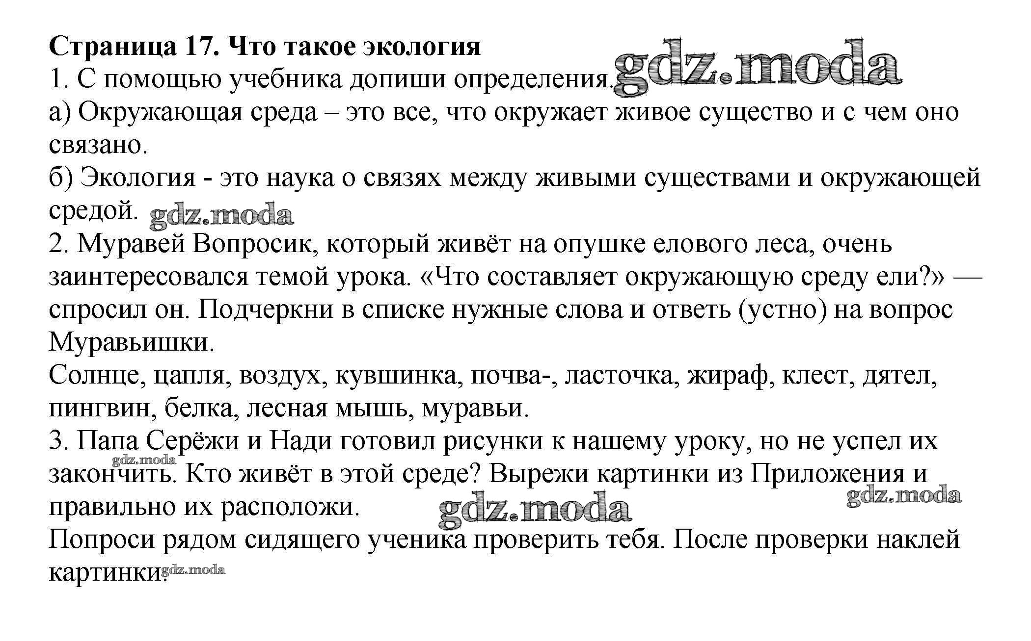 ГДЗ решение к заданию № 17 Окружающий мир 3 класс рабочая тетрадь Плешаков А.А. Просвещение 2013 Часть 1, Часть 2 ФГОС бесплатно на гдз.мода!