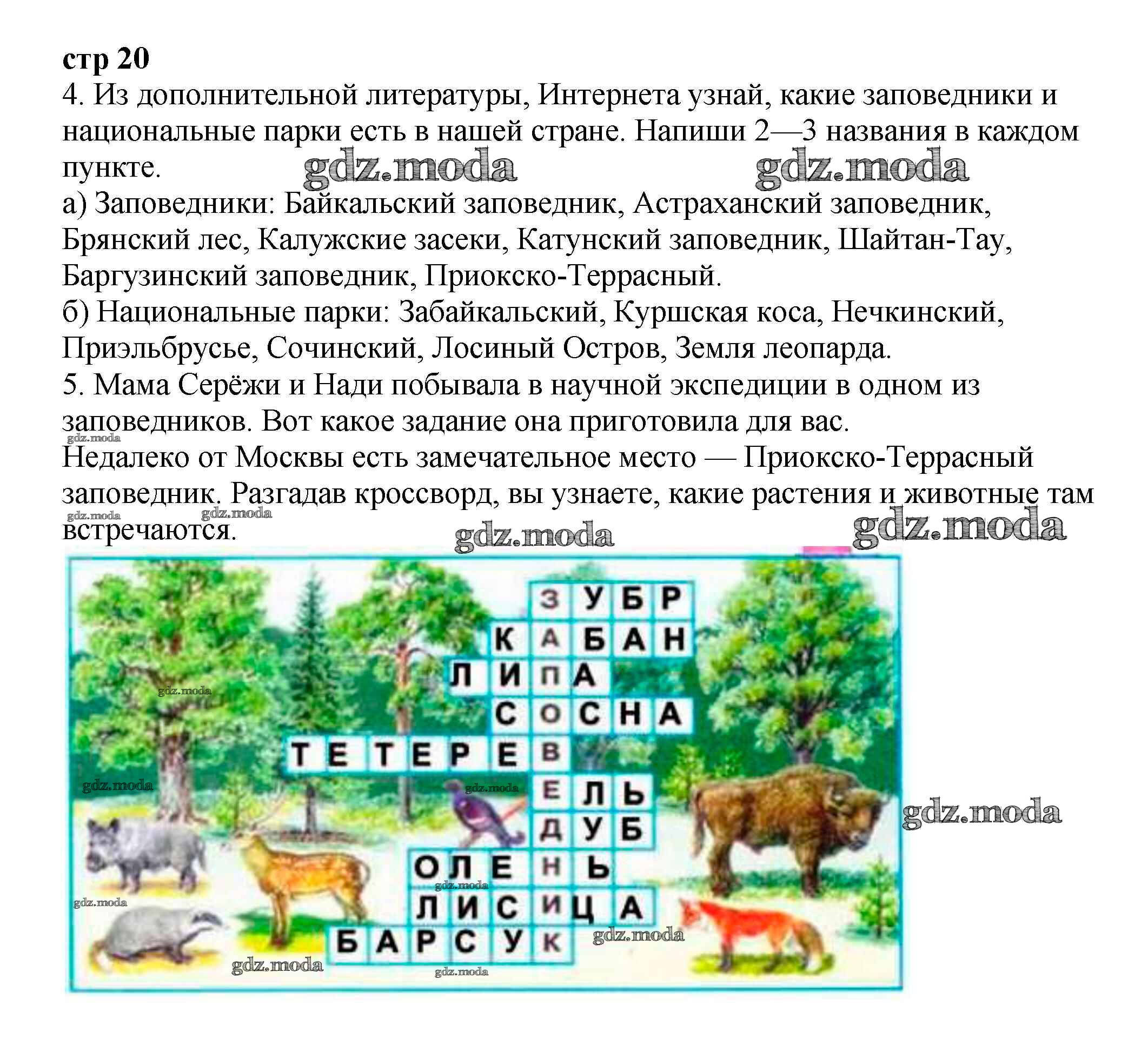 ГДЗ решение к заданию № 20 Окружающий мир 3 класс рабочая тетрадь Плешаков А.А. Просвещение 2013 Часть 1, Часть 2 ФГОС бесплатно на гдз.мода!
