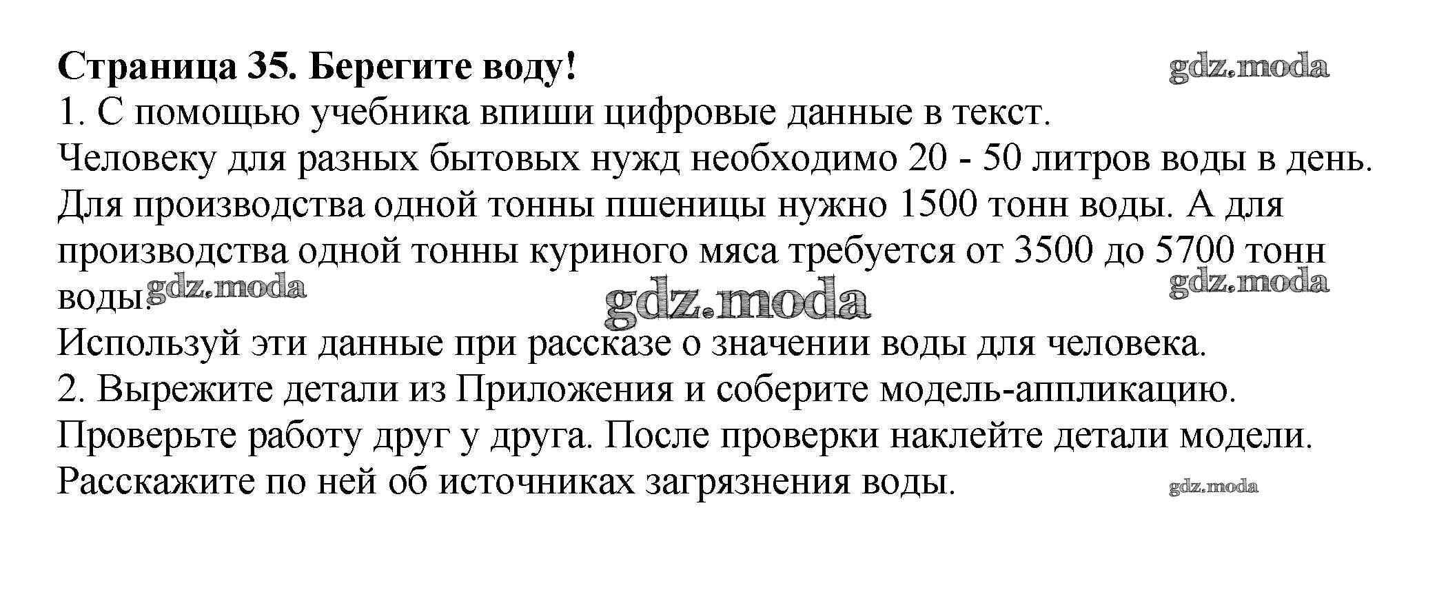 ГДЗ решение к заданию № 35 Окружающий мир 3 класс рабочая тетрадь Плешаков А.А. Просвещение 2013 Часть 1, Часть 2 ФГОС бесплатно на гдз.мода!