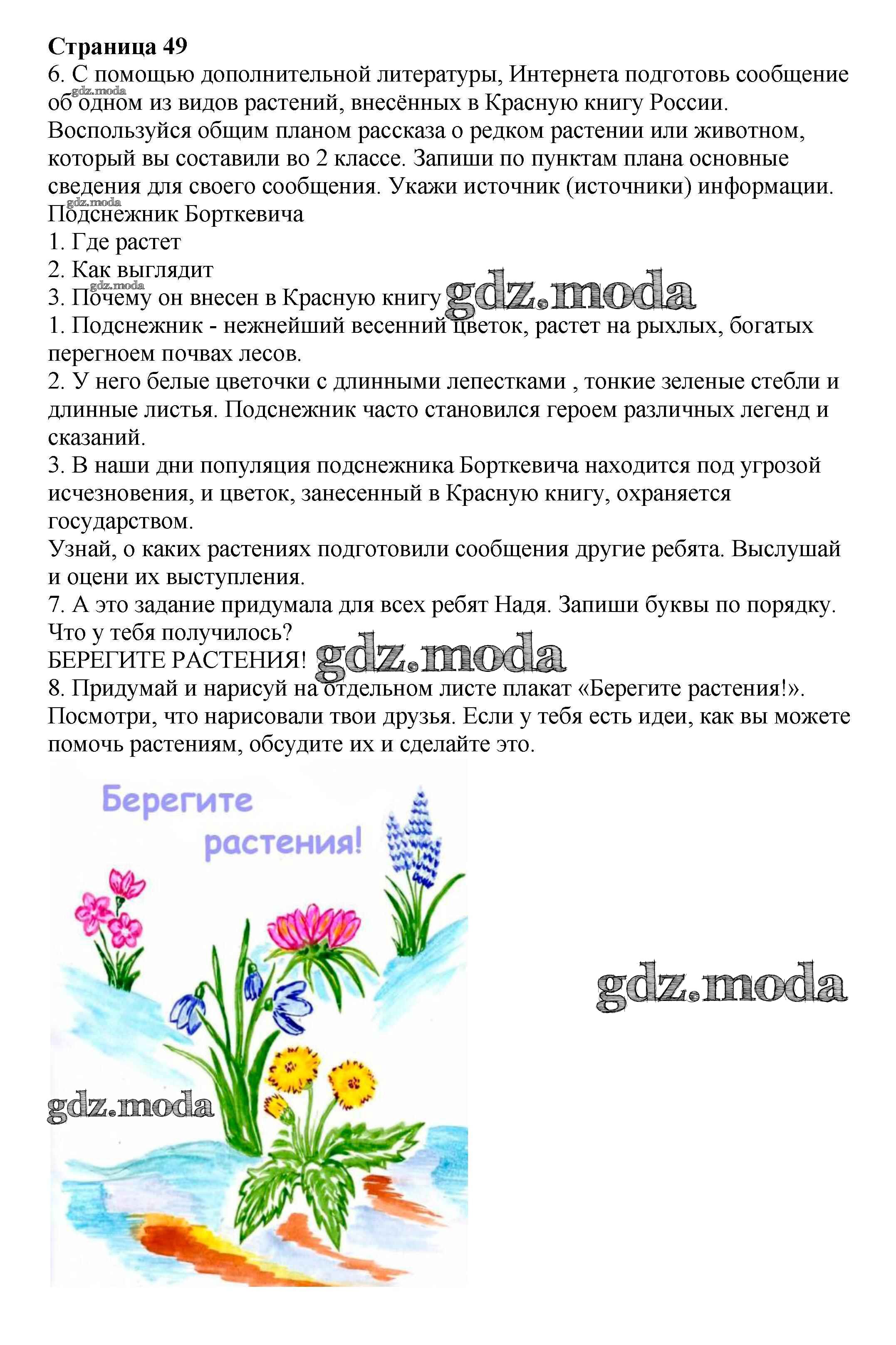 ГДЗ решение к заданию № 49 Окружающий мир 3 класс рабочая тетрадь Плешаков А.А. Просвещение 2013 Часть 1, Часть 2 ФГОС бесплатно на гдз.мода!