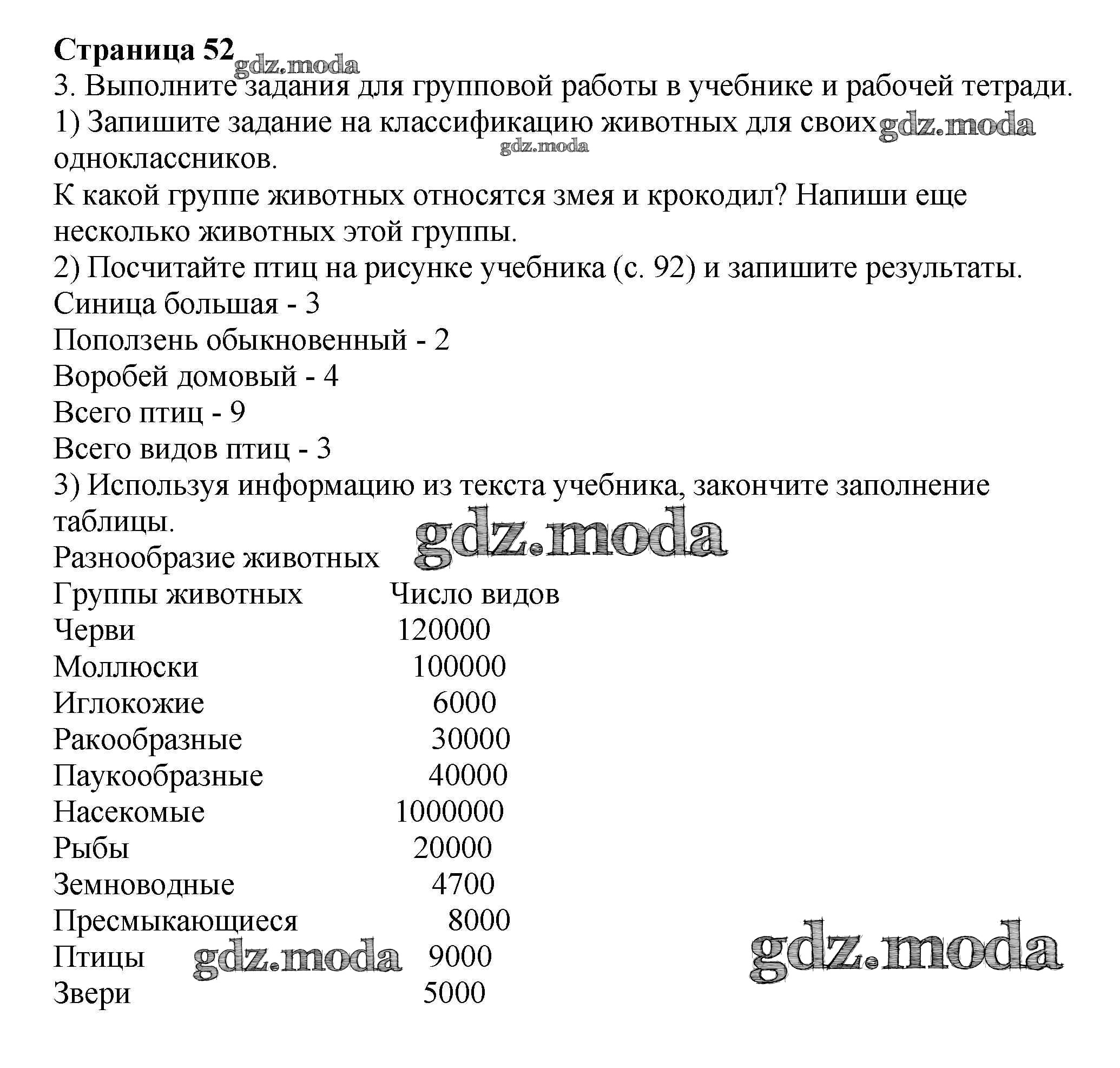 ГДЗ решение к заданию № 52 Окружающий мир 3 класс рабочая тетрадь Плешаков А.А. Просвещение 2013 Часть 1, Часть 2 ФГОС бесплатно на гдз.мода!