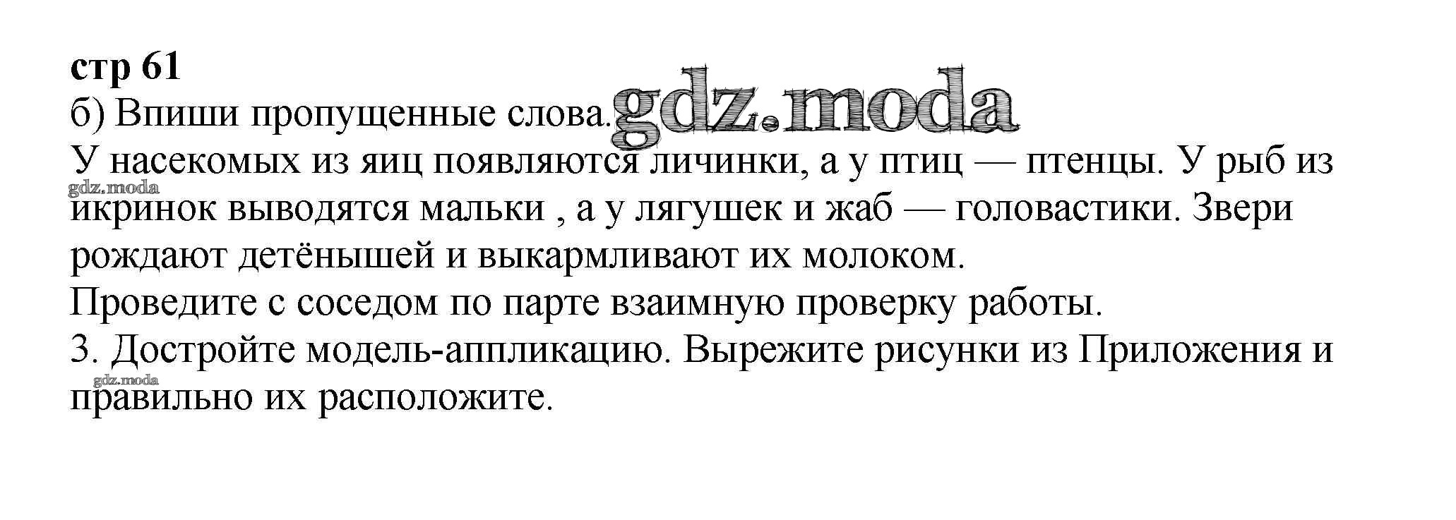 ГДЗ решение к заданию № 61 Окружающий мир 3 класс рабочая тетрадь Плешаков А.А. Просвещение 2013 Часть 1, Часть 2 ФГОС бесплатно на гдз.мода!