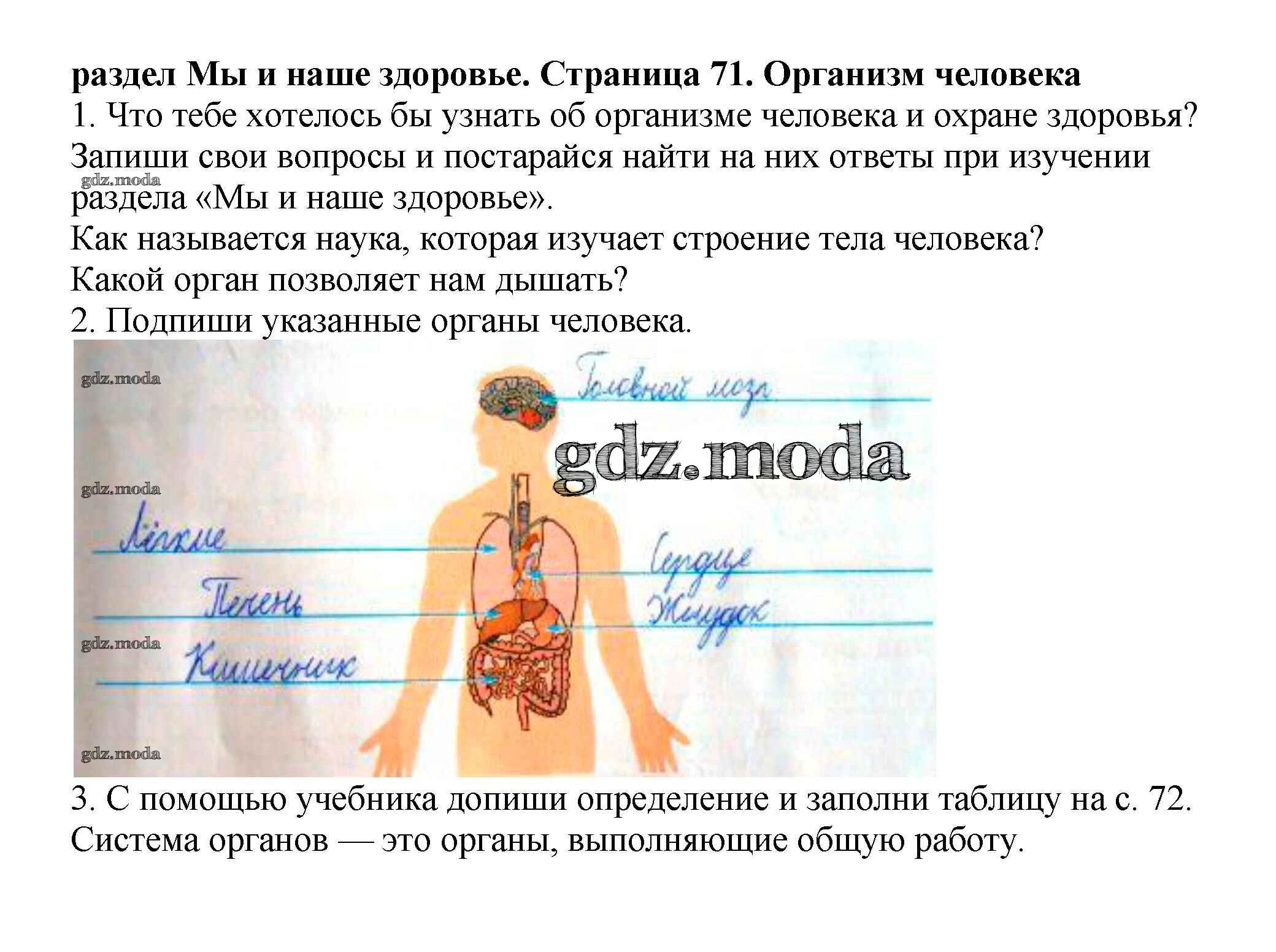 ГДЗ решение к заданию № 71 Окружающий мир 3 класс рабочая тетрадь Плешаков А.А. Просвещение 2013 Часть 1, Часть 2 ФГОС бесплатно на гдз.мода!