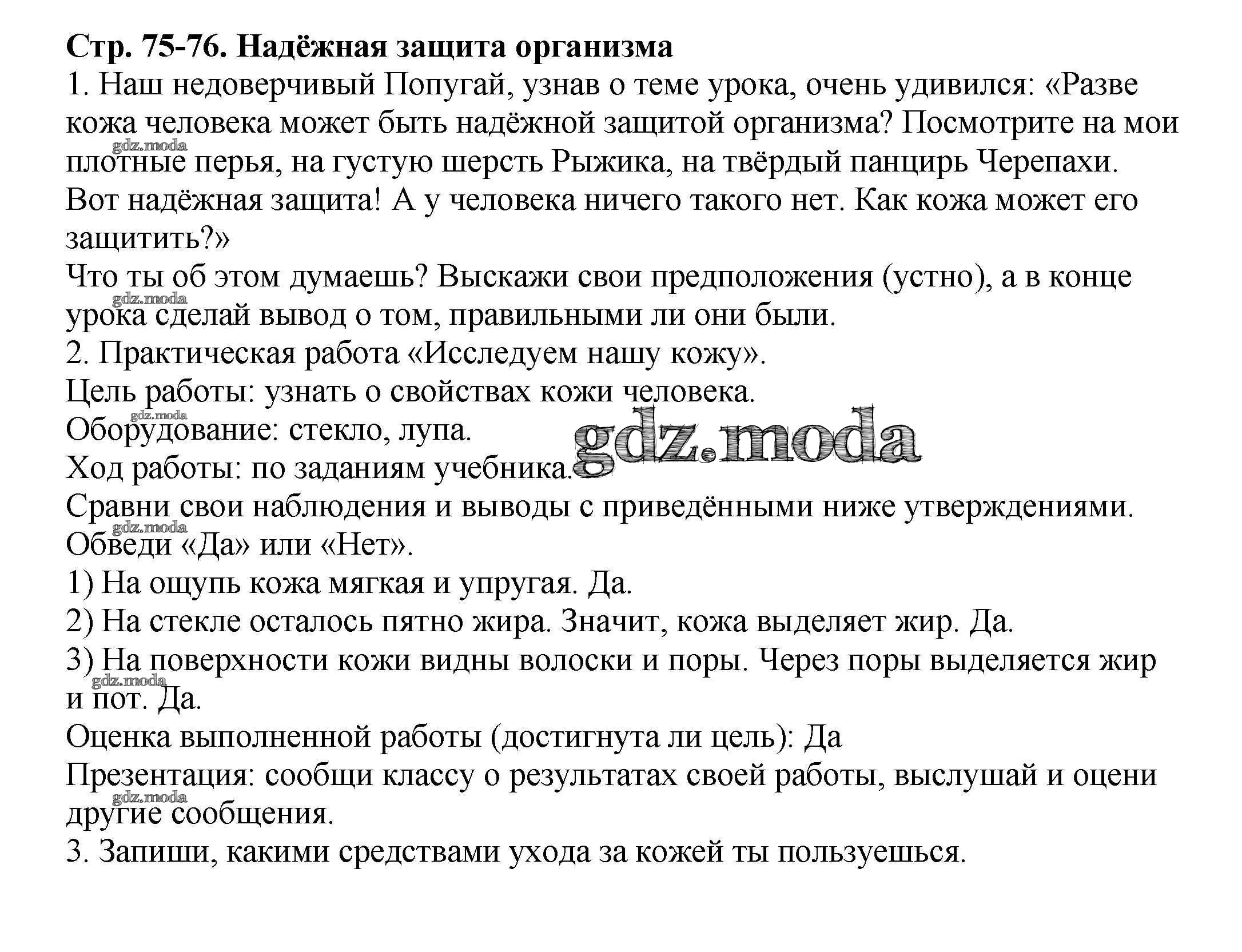 ГДЗ решение к заданию № 75 Окружающий мир 3 класс рабочая тетрадь Плешаков А.А. Просвещение 2013 Часть 1, Часть 2 ФГОС бесплатно на гдз.мода!