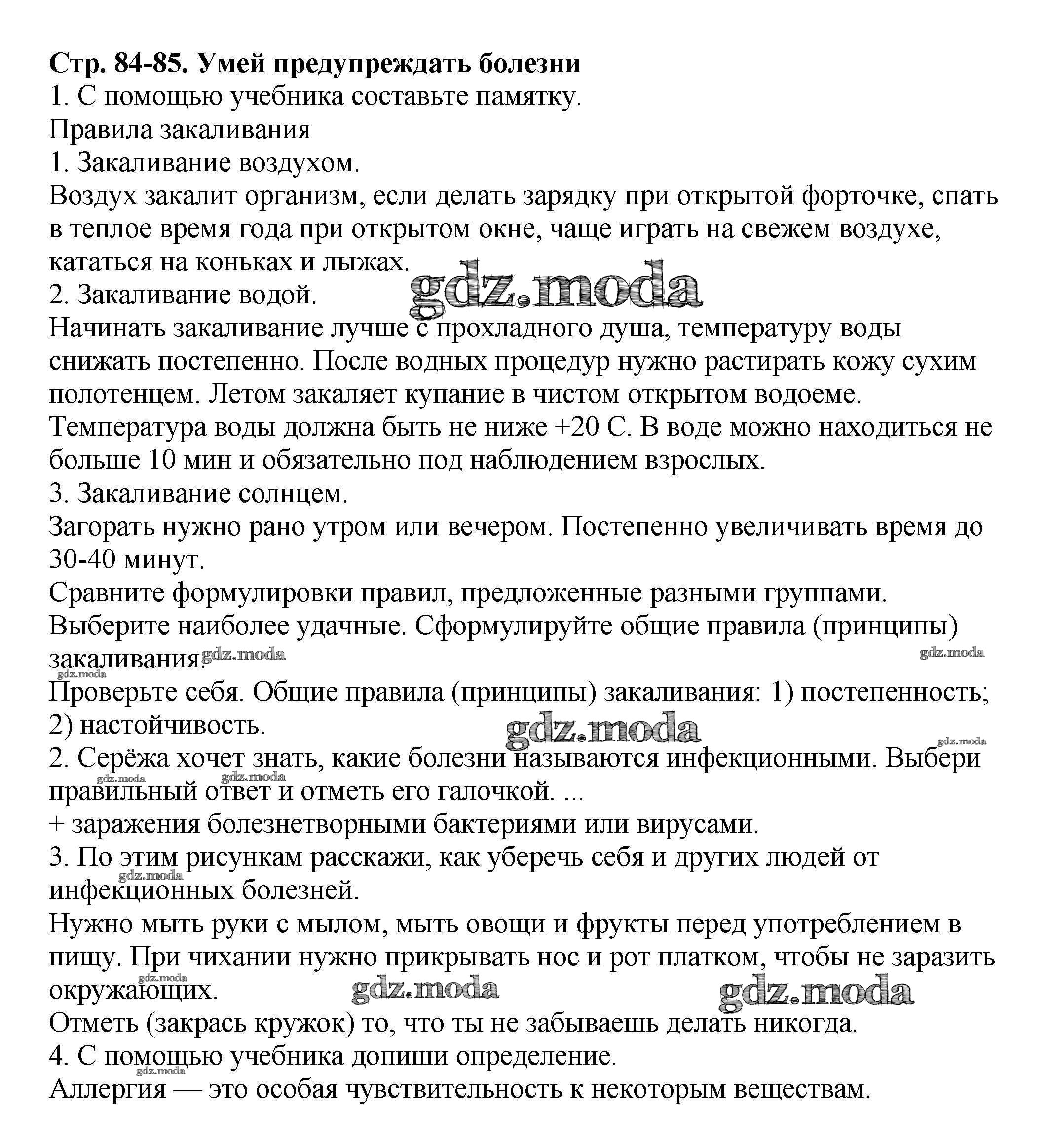 ГДЗ решение к заданию № 84 Окружающий мир 3 класс рабочая тетрадь Плешаков А.А. Просвещение 2013 Часть 1, Часть 2 ФГОС бесплатно на гдз.мода!