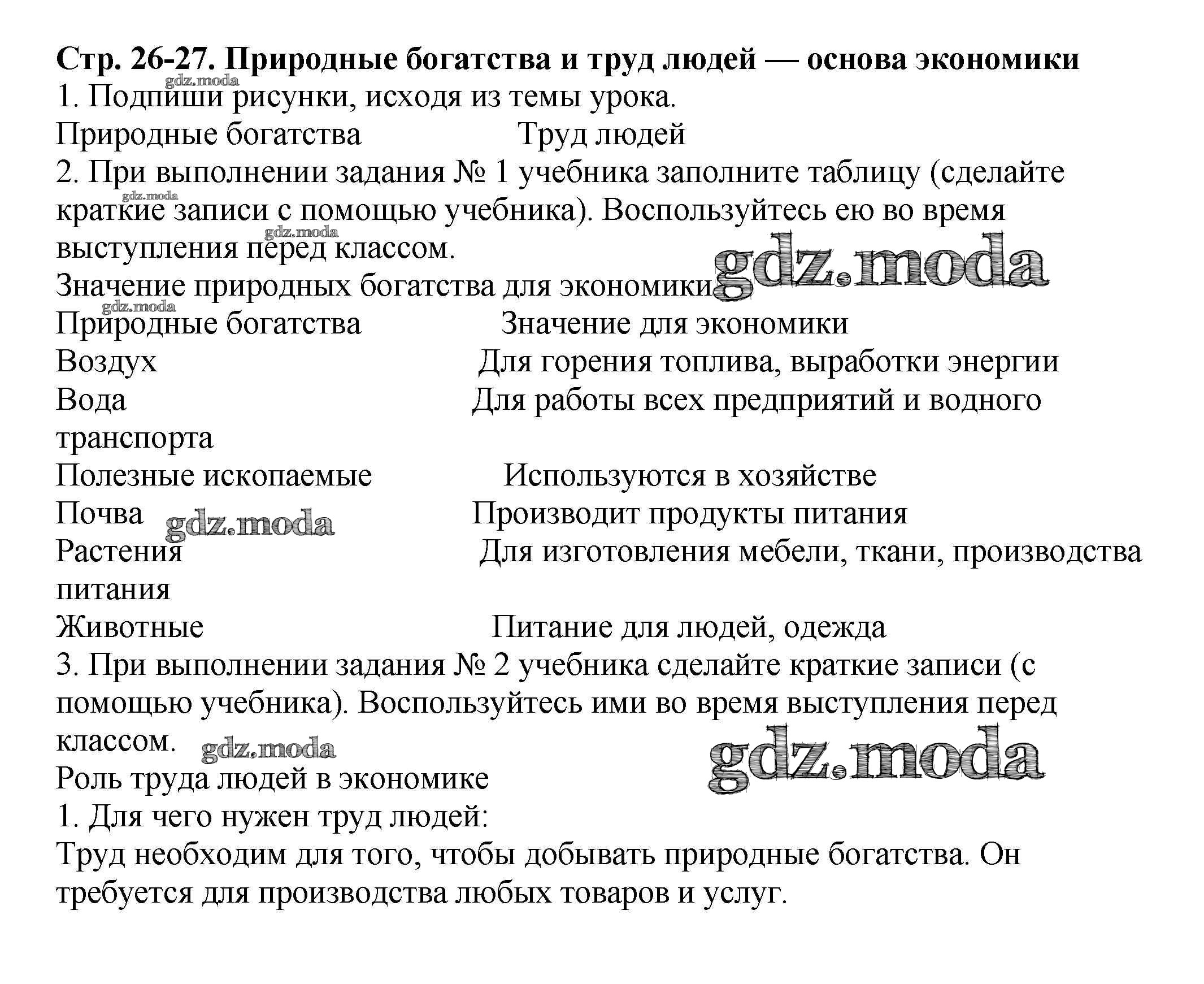 ГДЗ решение к заданию № 26 Окружающий мир 3 класс рабочая тетрадь Плешаков А.А. Просвещение 2013 Часть 1, Часть 2 ФГОС бесплатно на гдз.мода!