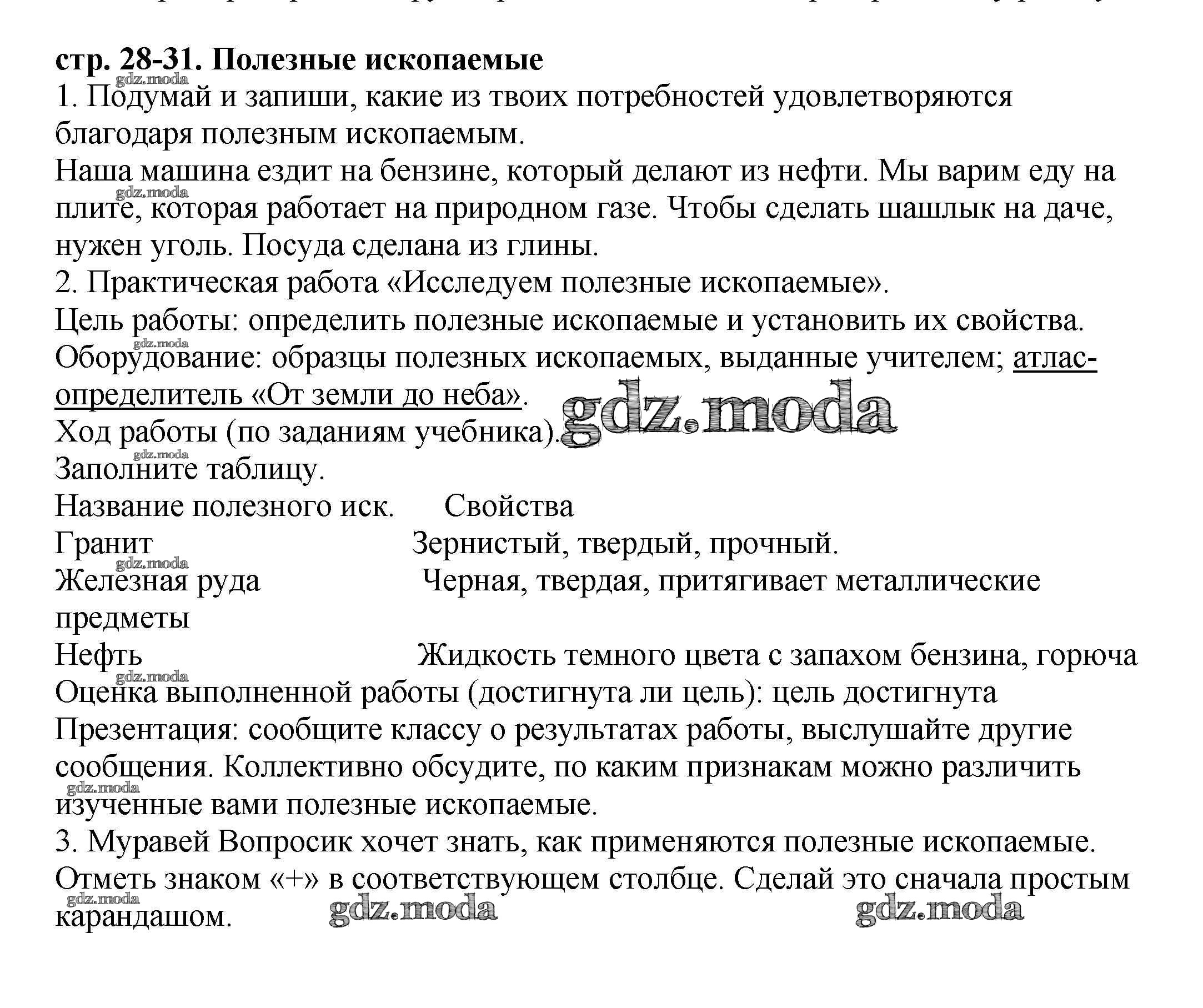 ГДЗ решение к заданию № 28 Окружающий мир 3 класс рабочая тетрадь Плешаков А.А. Просвещение 2013 Часть 1, Часть 2 ФГОС бесплатно на гдз.мода!