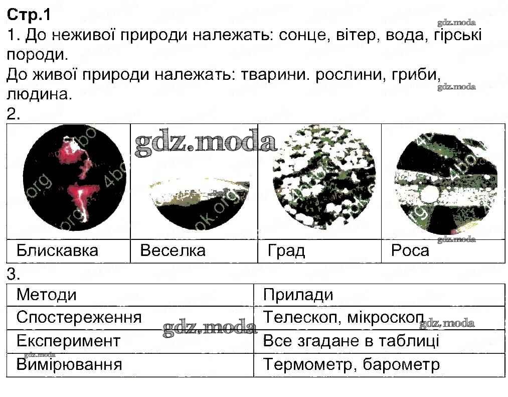 ГДЗ решение к заданию № 1 Природоведение 3 класс рабочая тетрадь Грущинская Освiта 2014 бесплатно на гдз.мода!