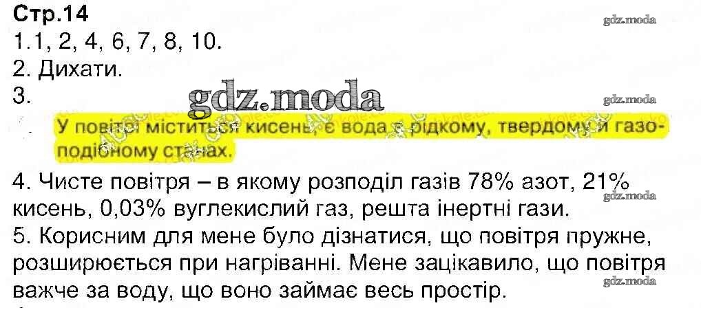 ГДЗ решение к заданию № 14 Природоведение 3 класс рабочая тетрадь Грущинская Освiта 2014 бесплатно на гдз.мода!