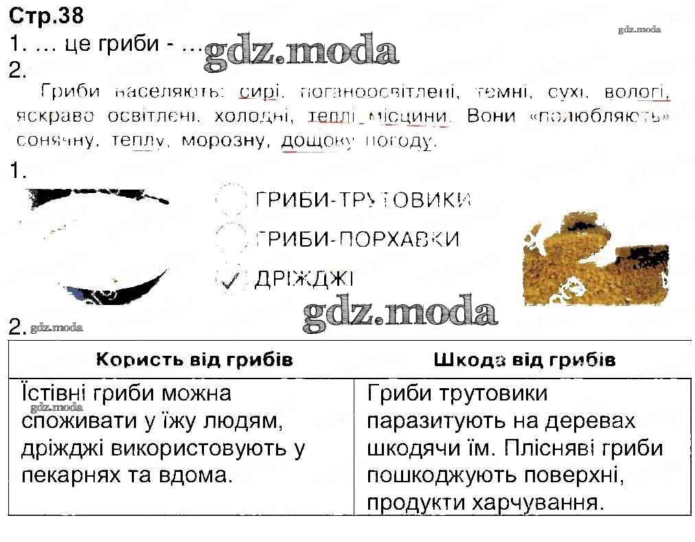 ГДЗ решение к заданию № 38 Природоведение 3 класс рабочая тетрадь Грущинская Освiта 2014 бесплатно на гдз.мода!