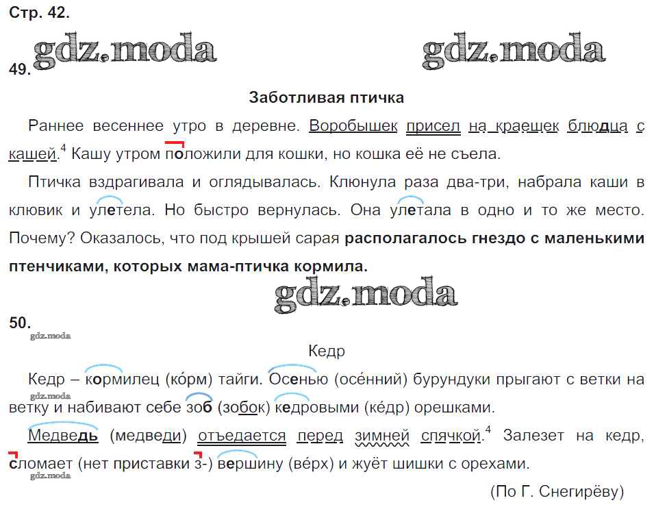 ГДЗ решение к заданию № 42 Русский язык 3 класс рабочая тетрадь Рамзаева Т.Г. Дрофа 2020 Часть 1, Часть 2 ФГОС бесплатно на гдз.мода!