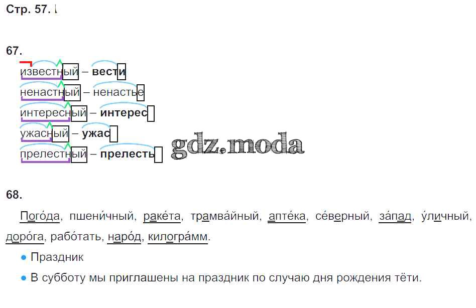 ГДЗ решение к заданию № 57 Русский язык 3 класс рабочая тетрадь Рамзаева Т.Г. Дрофа 2020 Часть 1, Часть 2 ФГОС бесплатно на гдз.мода!