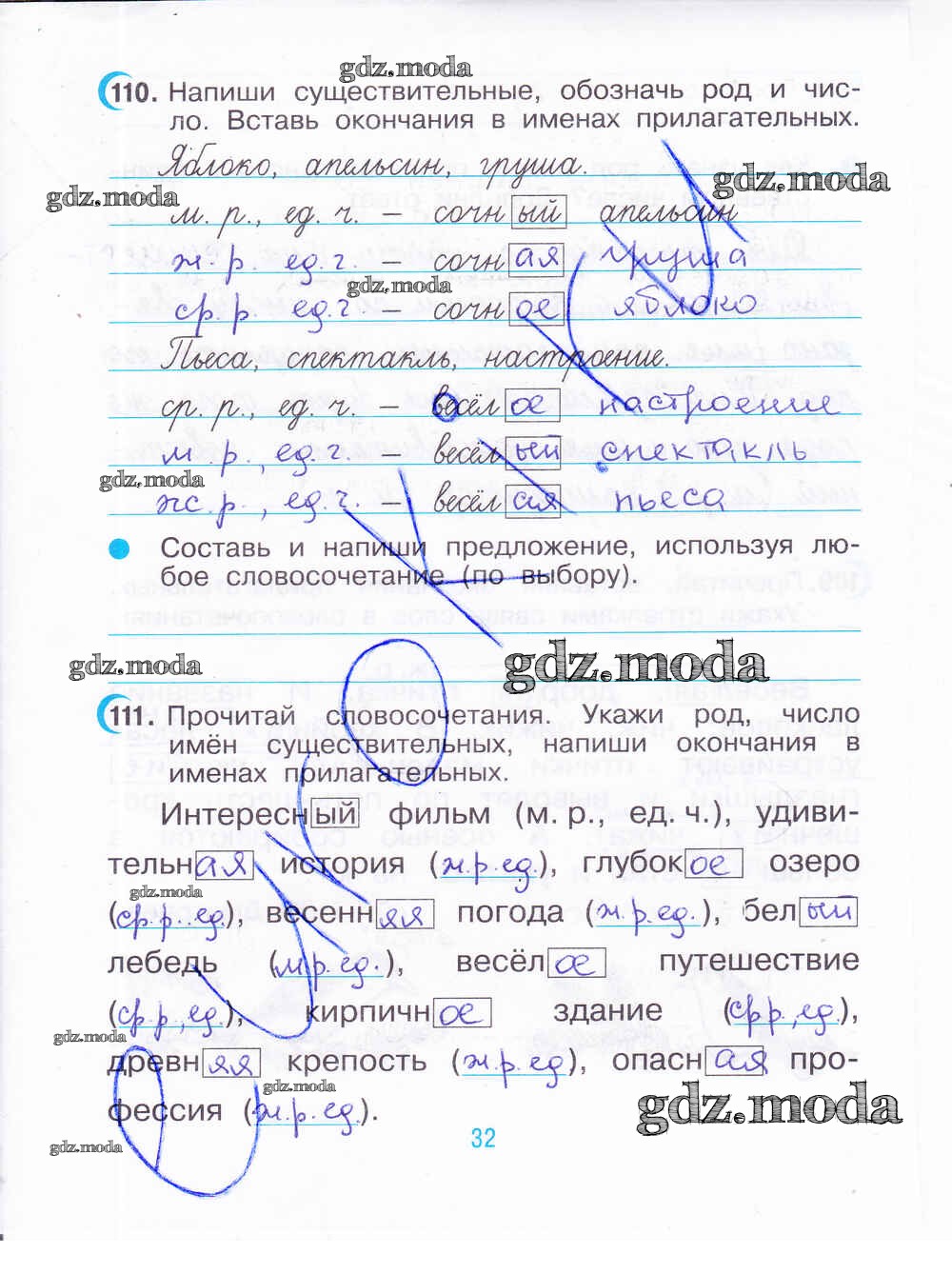 ГДЗ решение к заданию № 32 Русский язык 3 класс рабочая тетрадь Рамзаева Т.Г. Дрофа 2020 Часть 1, Часть 2 ФГОС бесплатно на гдз.мода!