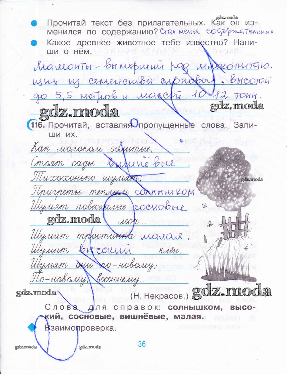 ГДЗ решение к заданию № 36 Русский язык 3 класс рабочая тетрадь Рамзаева Т.Г. Дрофа 2020 Часть 1, Часть 2 ФГОС бесплатно на гдз.мода!