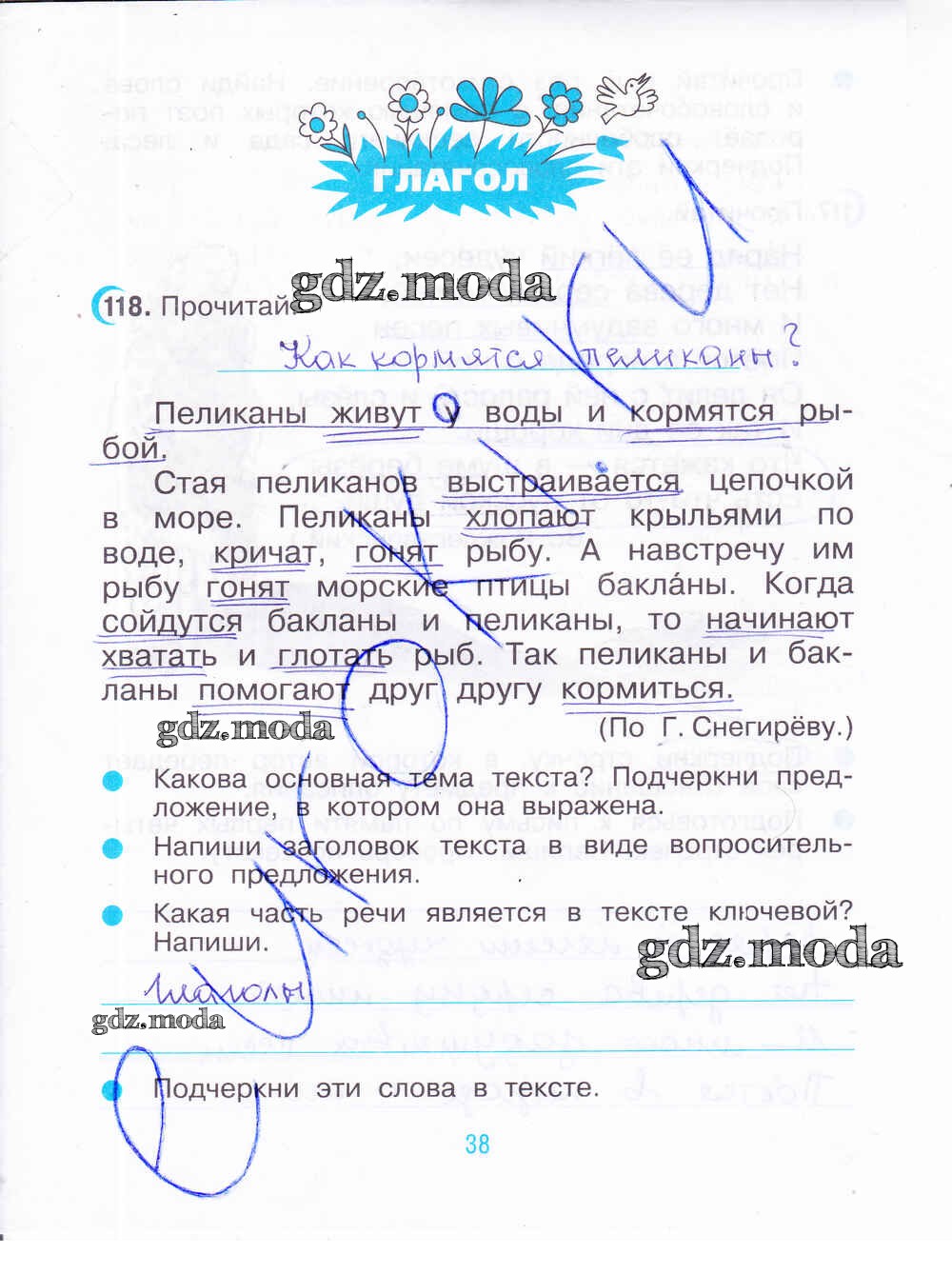 ГДЗ решение к заданию № 38 Русский язык 3 класс рабочая тетрадь Рамзаева Т.Г. Дрофа 2020 Часть 1, Часть 2 ФГОС бесплатно на гдз.мода!