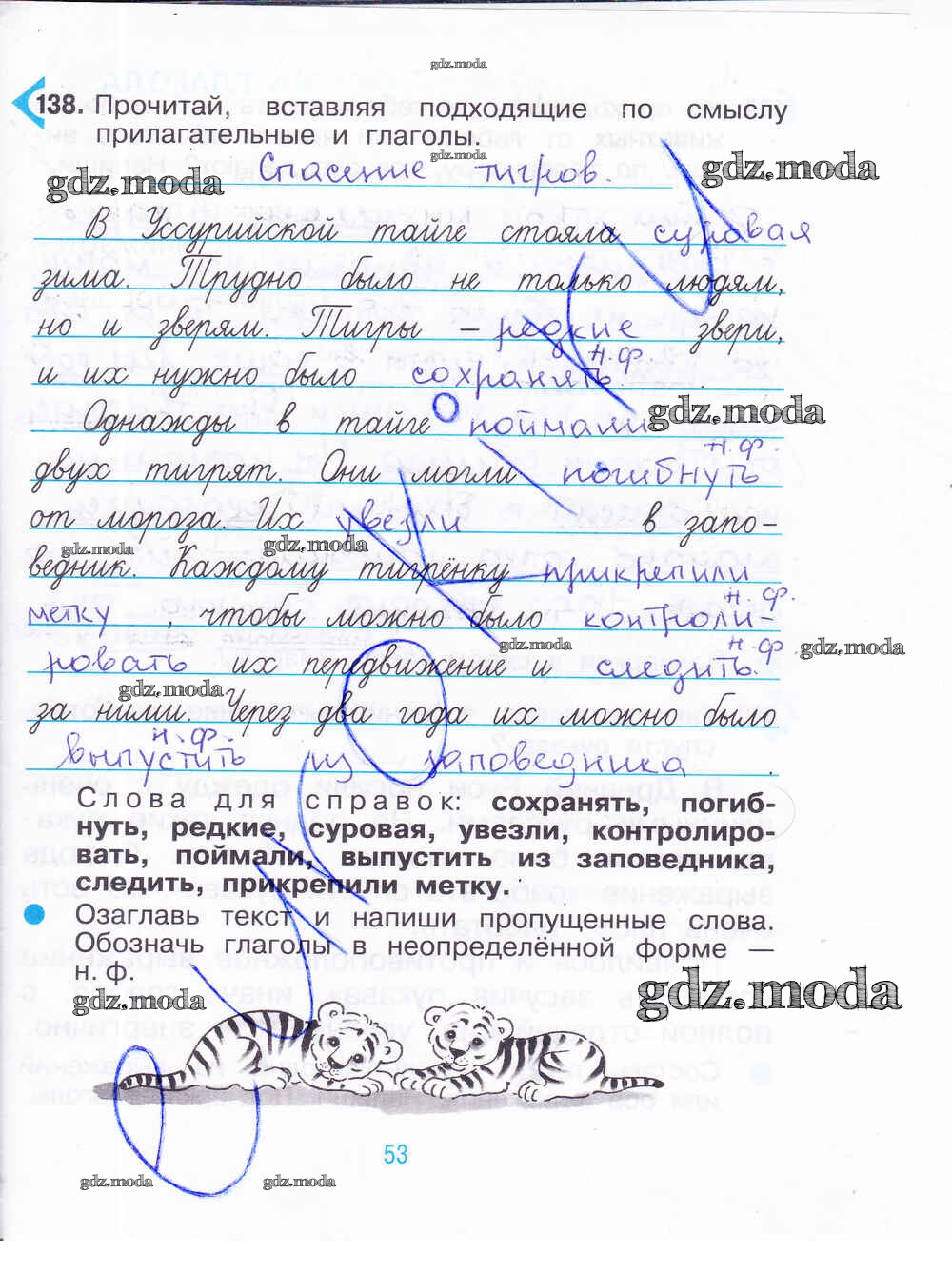 ГДЗ решение к заданию № 53 Русский язык 3 класс рабочая тетрадь Рамзаева Т.Г. Дрофа 2020 Часть 1, Часть 2 ФГОС бесплатно на гдз.мода!