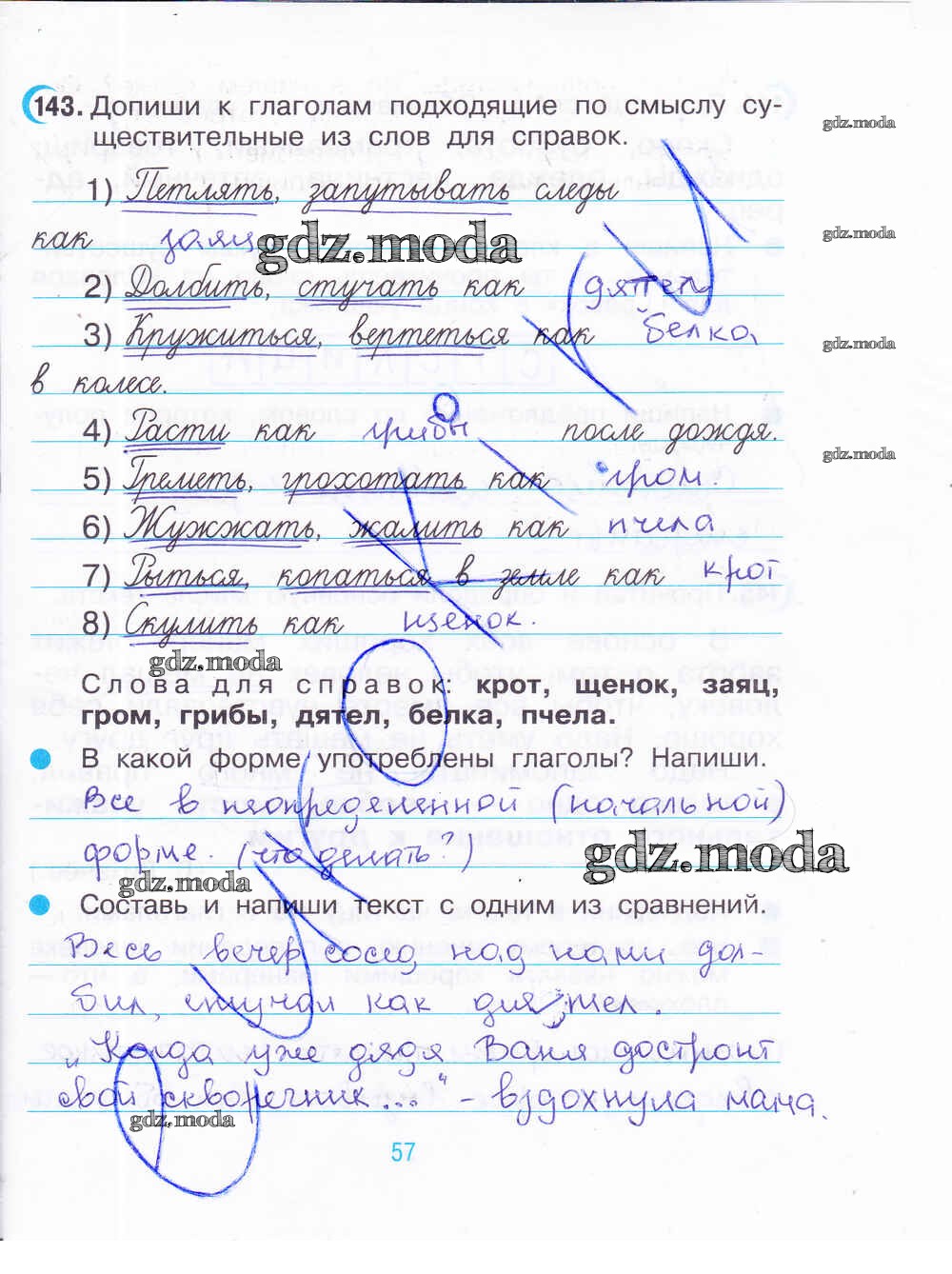 ГДЗ решение к заданию № 57 Русский язык 3 класс рабочая тетрадь Рамзаева Т.Г. Дрофа 2020 Часть 1, Часть 2 ФГОС бесплатно на гдз.мода!