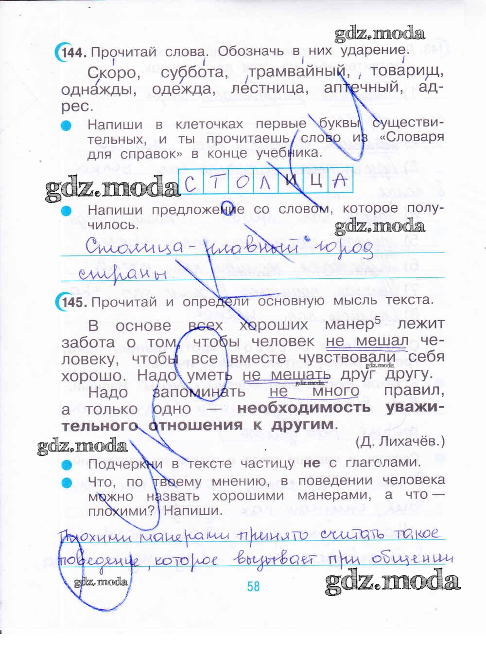 ГДЗ решение к заданию № 58 Русский язык 3 класс рабочая тетрадь Рамзаева Т.Г. Дрофа 2020 Часть 1, Часть 2 ФГОС бесплатно на гдз.мода!
