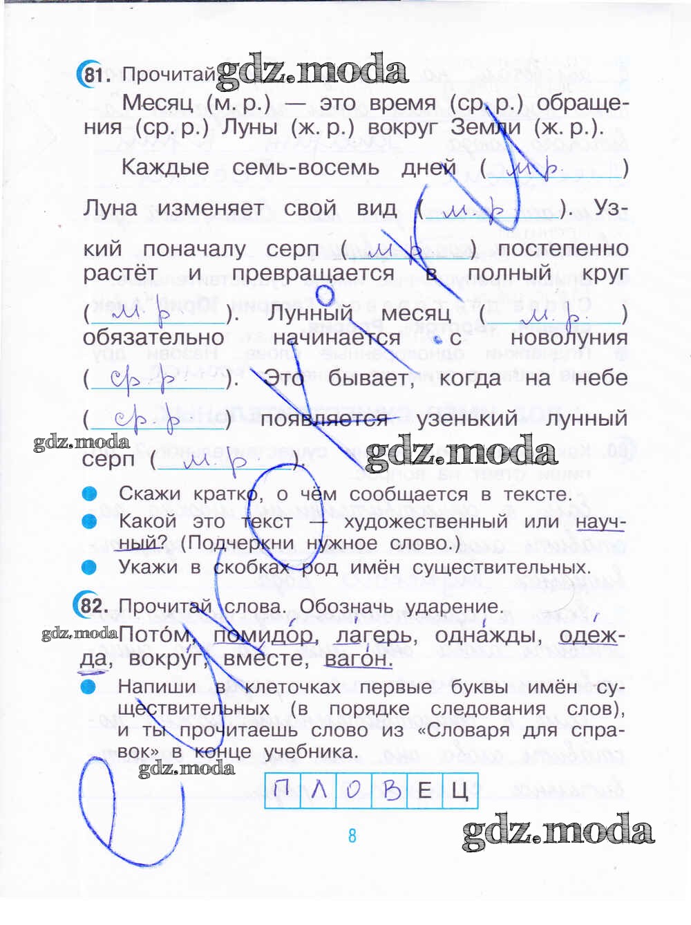 ОТВЕТ на задание № 8 Рабочая тетрадь по Русскому языку 3 класс Рамзаева