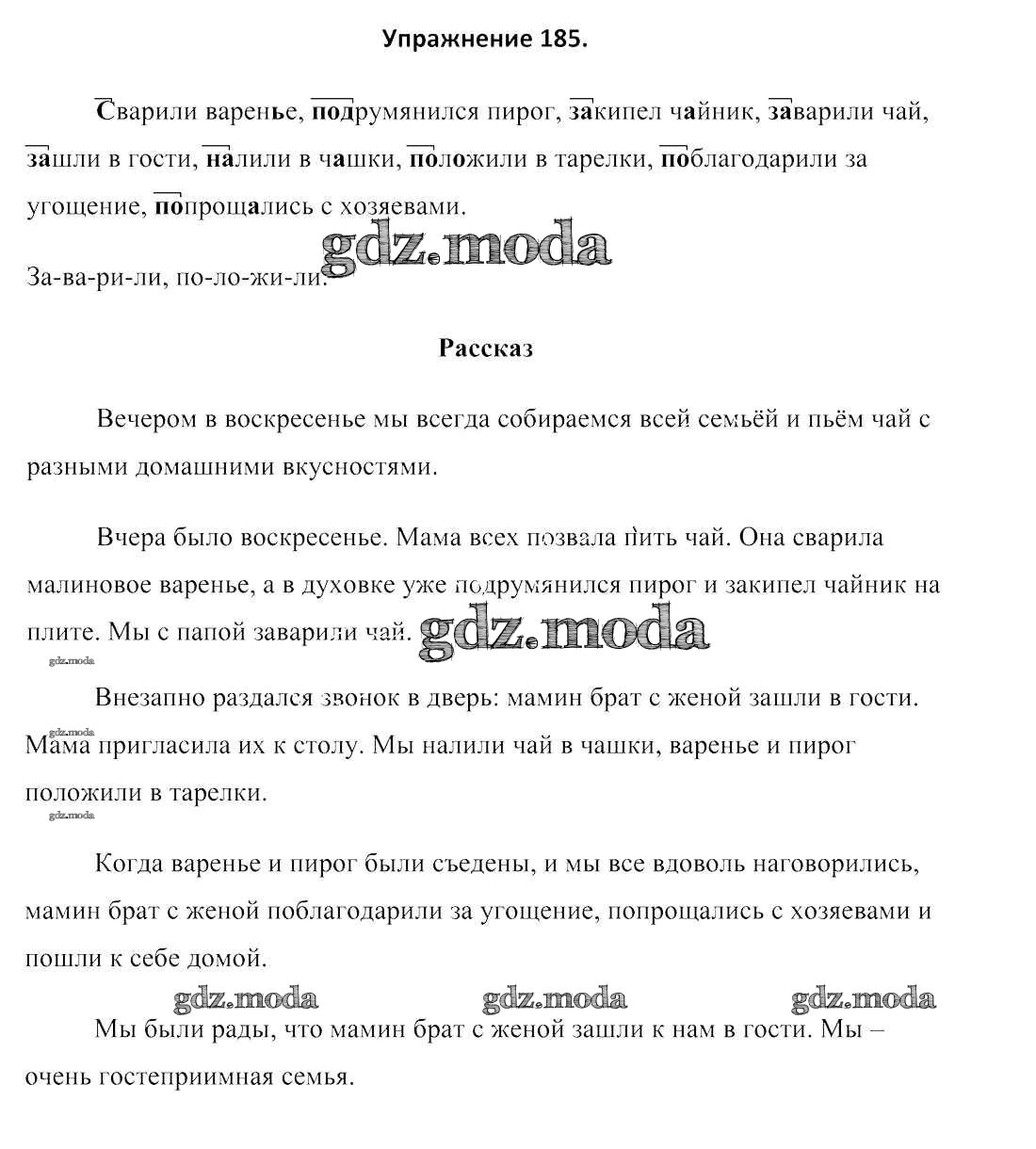 ГДЗ решение к заданию № 185 Русский язык 3 класс Антипова М. Б. Сэр-Вит 2019 Часть 1, Часть 2 ФГОС бесплатно на гдз.мода!