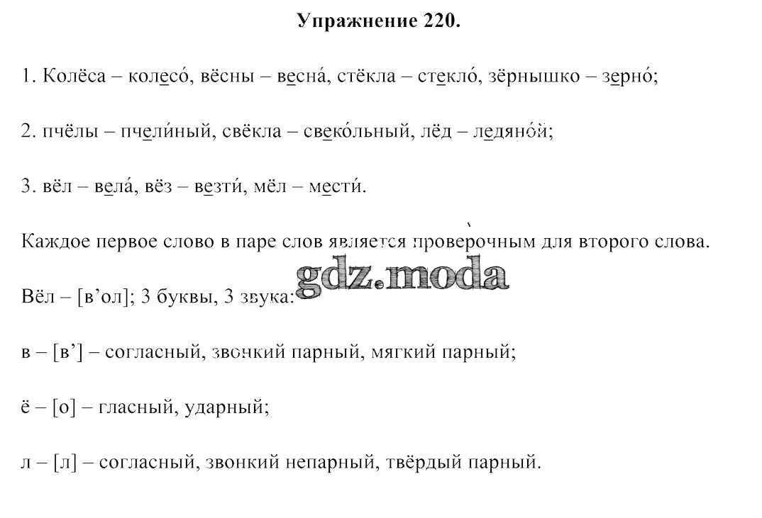 ГДЗ решение к заданию № 220 Русский язык 3 класс Антипова М. Б. Сэр-Вит 2019 Часть 1, Часть 2 ФГОС бесплатно на гдз.мода!