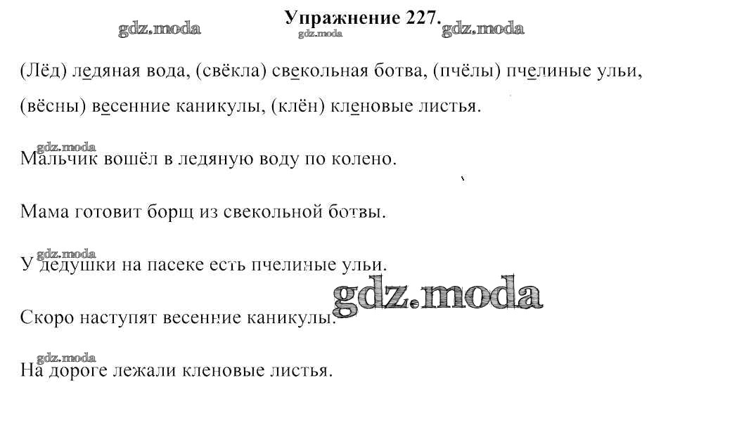 ГДЗ решение к заданию № 227 Русский язык 3 класс Антипова М. Б. Сэр-Вит 2019 Часть 1, Часть 2 ФГОС бесплатно на гдз.мода!