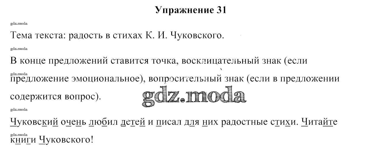 ГДЗ решение к заданию № 31 Русский язык 3 класс Антипова М. Б. Сэр-Вит 2019 Часть 1, Часть 2 ФГОС бесплатно на гдз.мода!