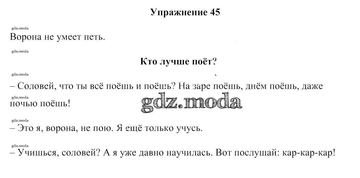 ГДЗ решение к заданию № 45 Русский язык 3 класс Антипова М. Б. Сэр-Вит 2019 Часть 1, Часть 2 ФГОС бесплатно на гдз.мода!