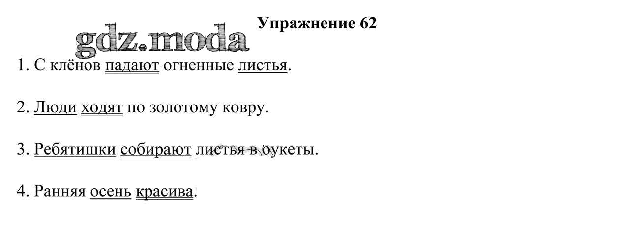ГДЗ решение к заданию № 62 Русский язык 3 класс Антипова М. Б. Сэр-Вит 2019 Часть 1, Часть 2 ФГОС бесплатно на гдз.мода!