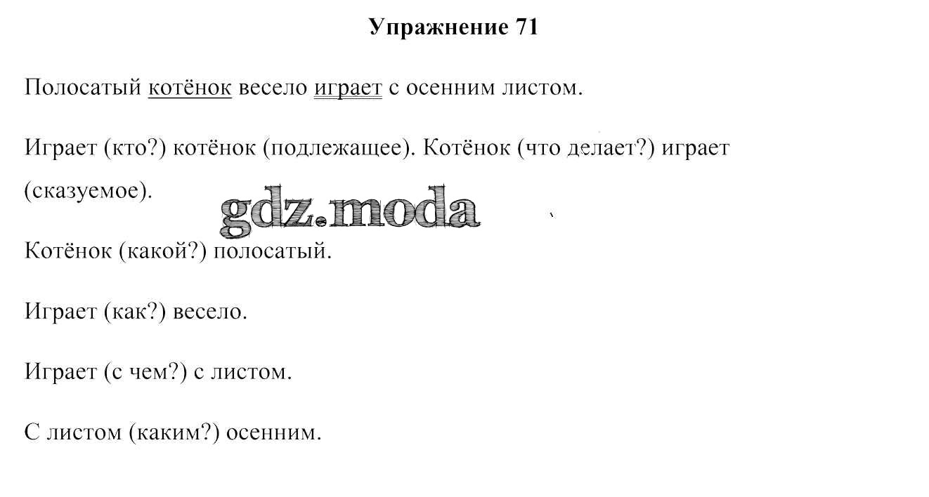 ГДЗ решение к заданию № 71 Русский язык 3 класс Антипова М. Б. Сэр-Вит 2019 Часть 1, Часть 2 ФГОС бесплатно на гдз.мода!